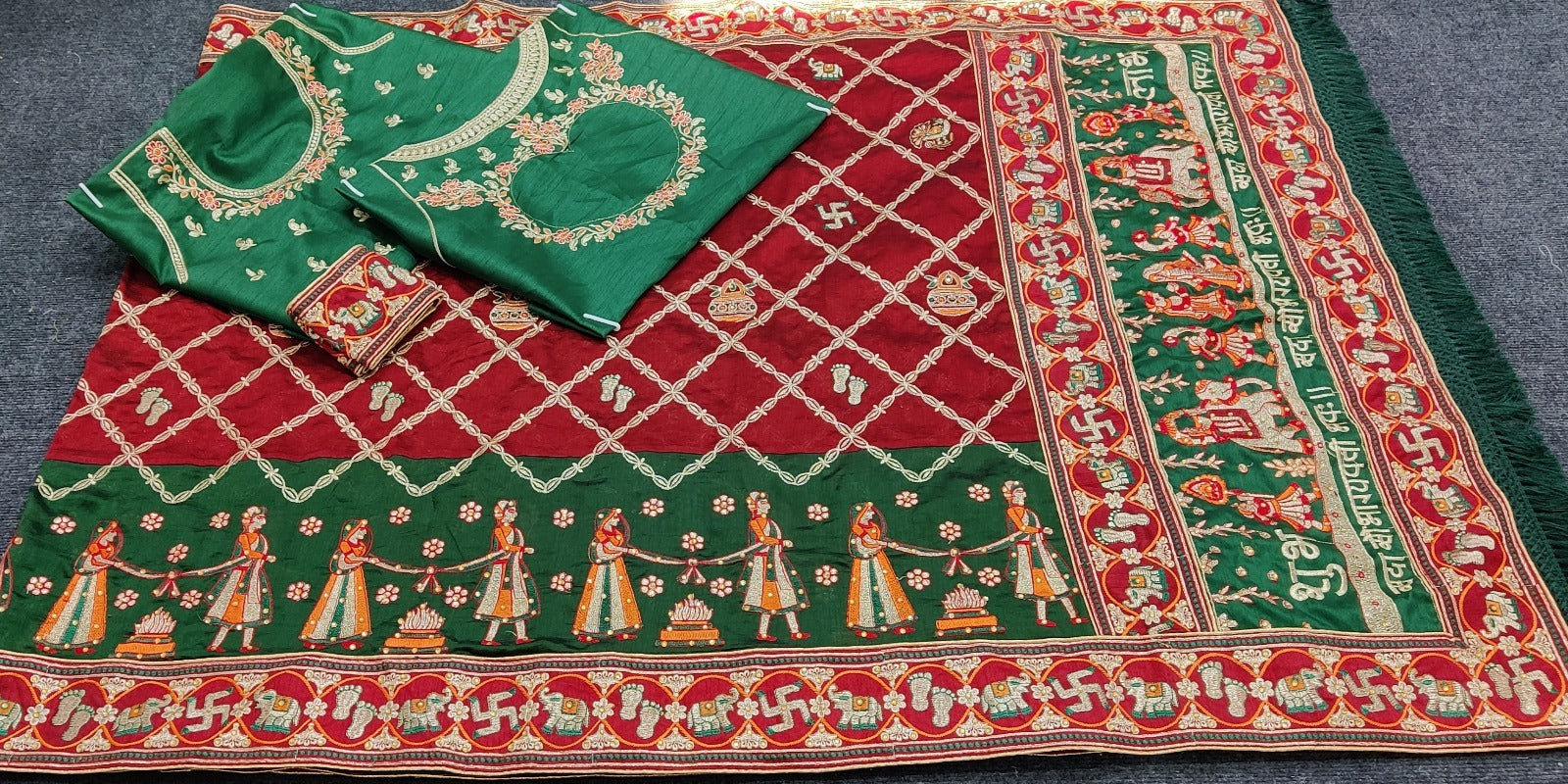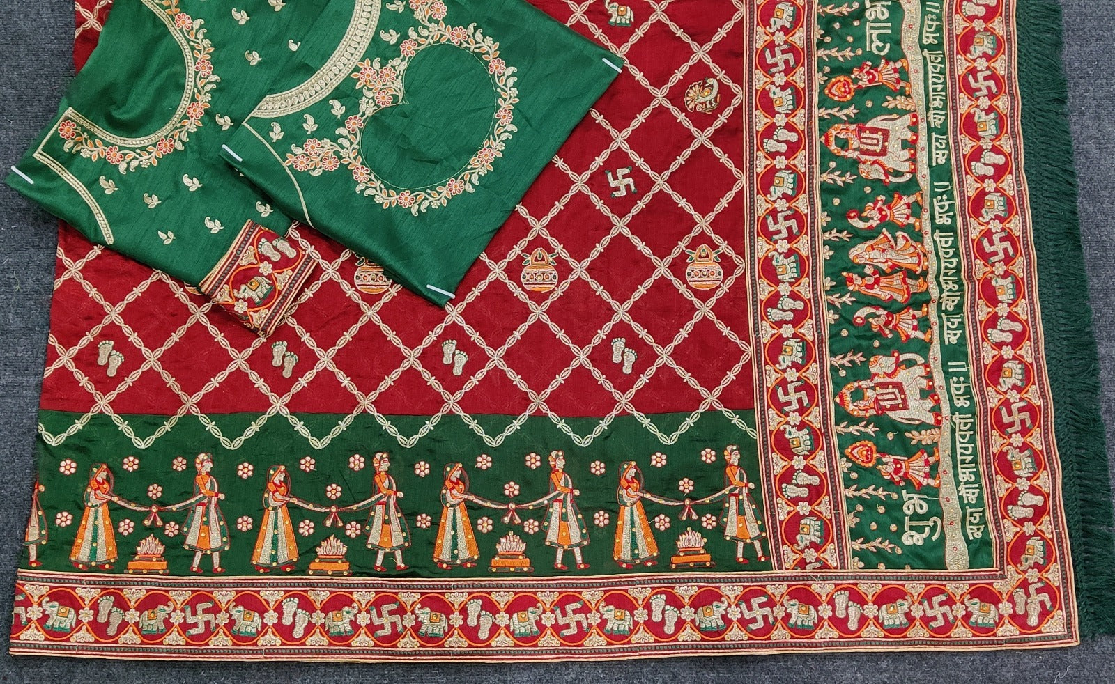 Work : Embroidery + Diamond Work + Embroidery Lace With Gota Patti Piping + Latkan