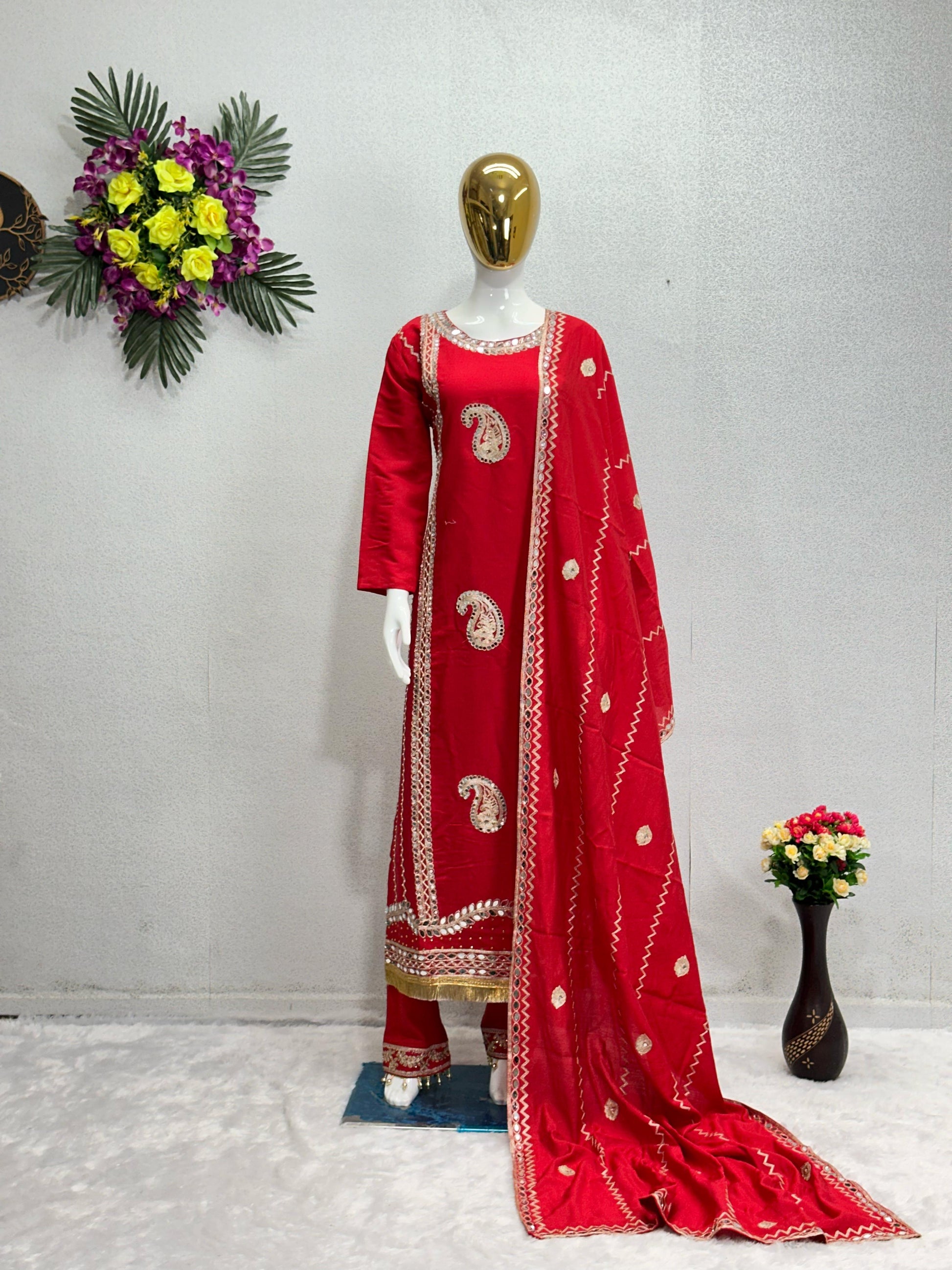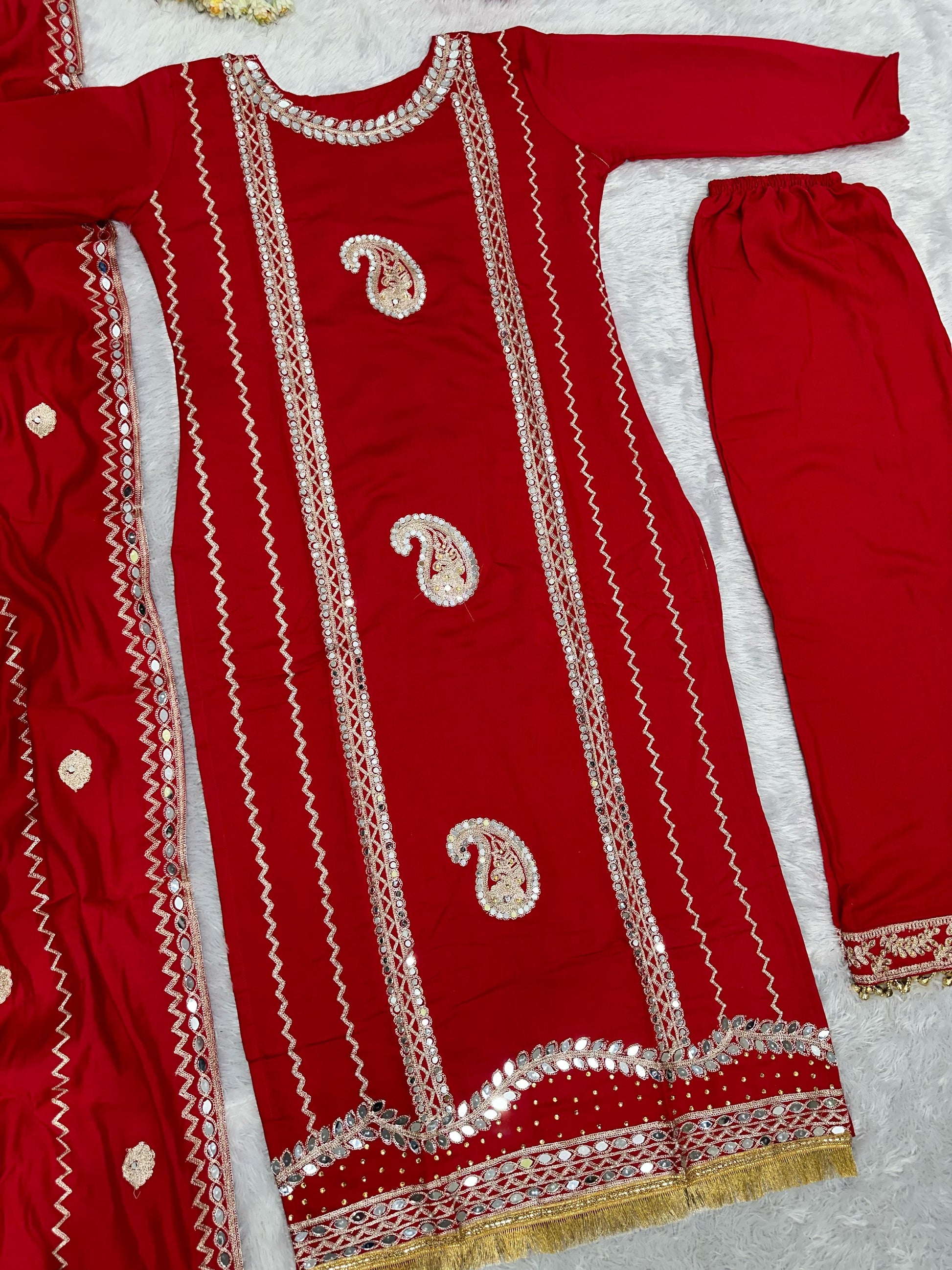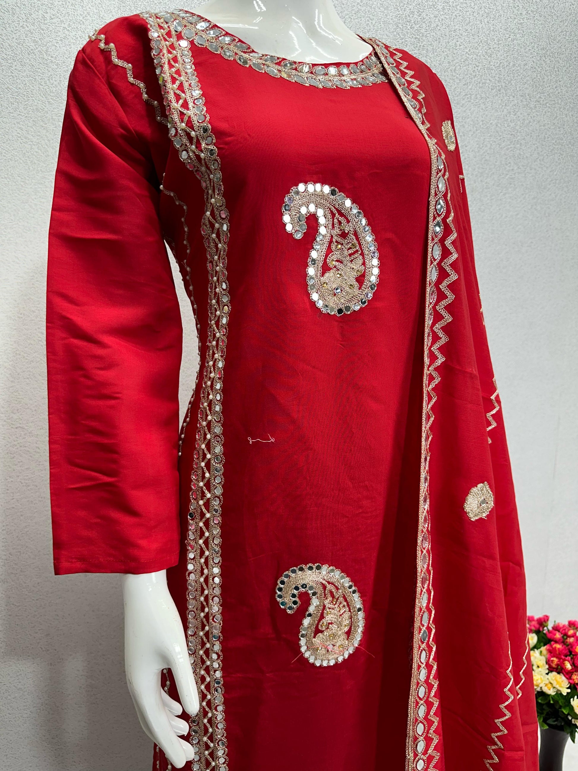 Dupatta Work : Full Embroidery Work With Real Mirror