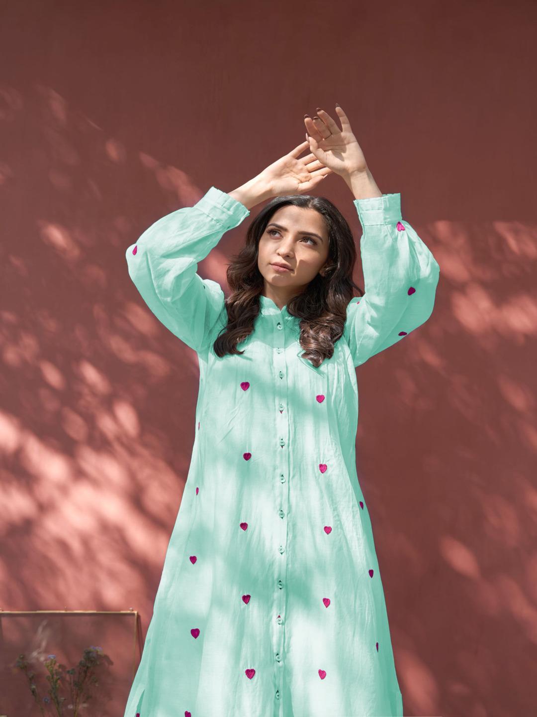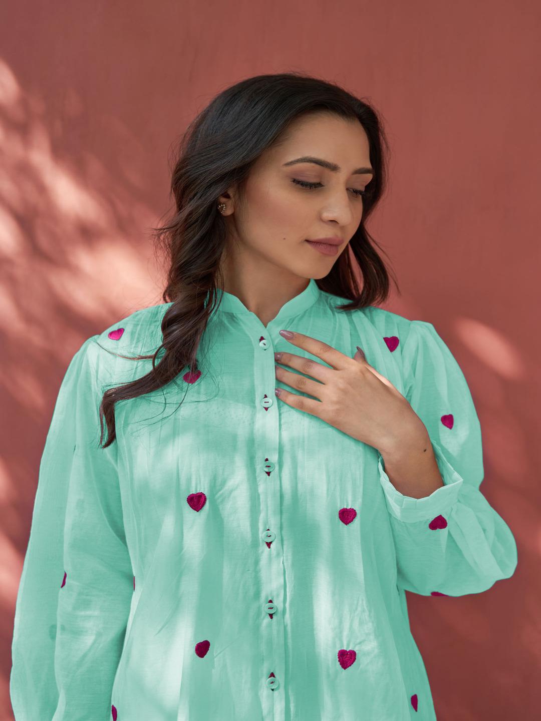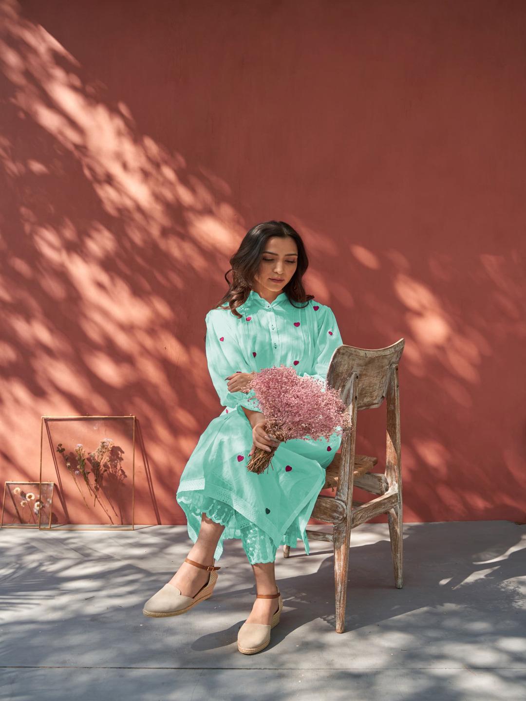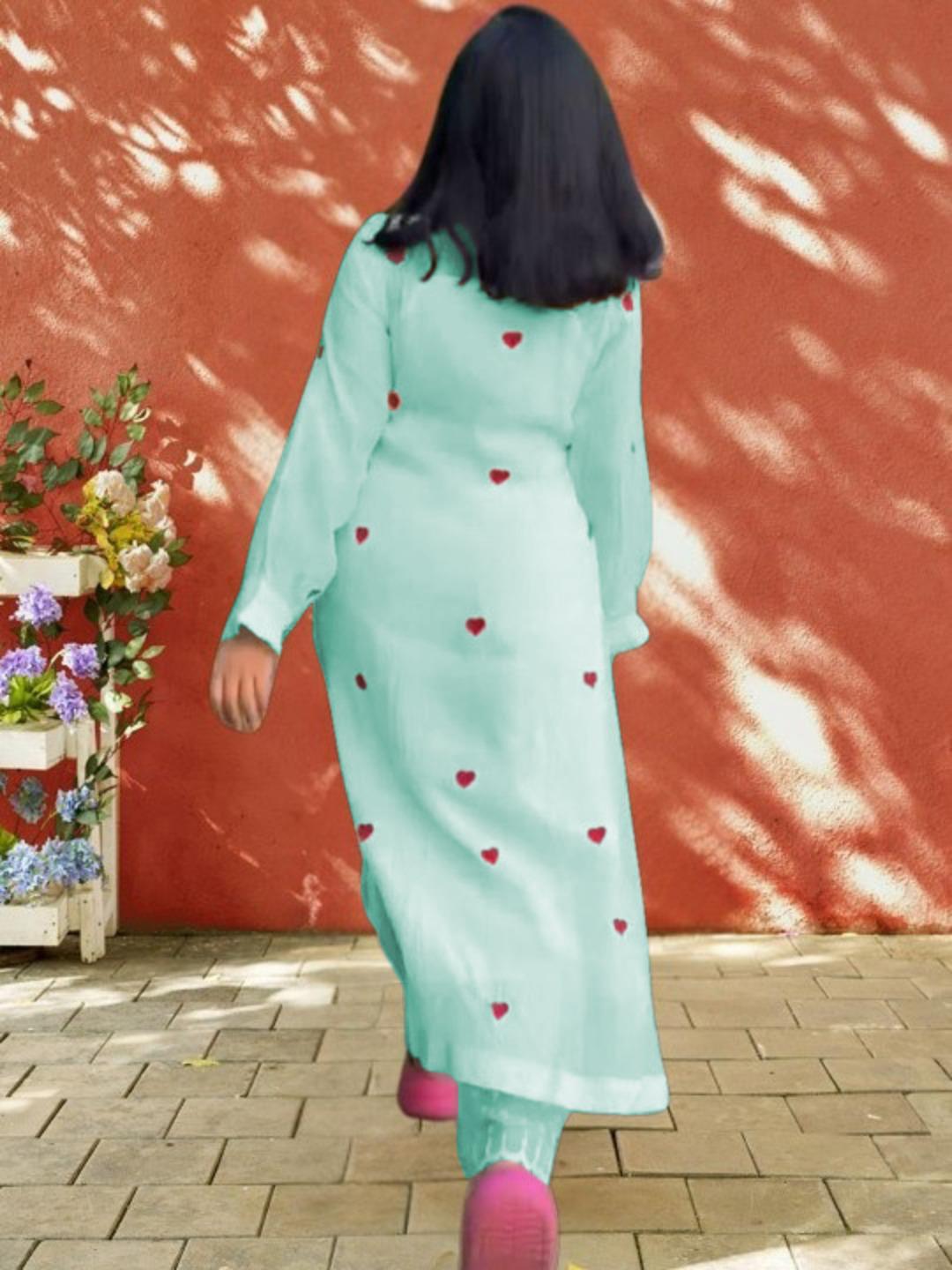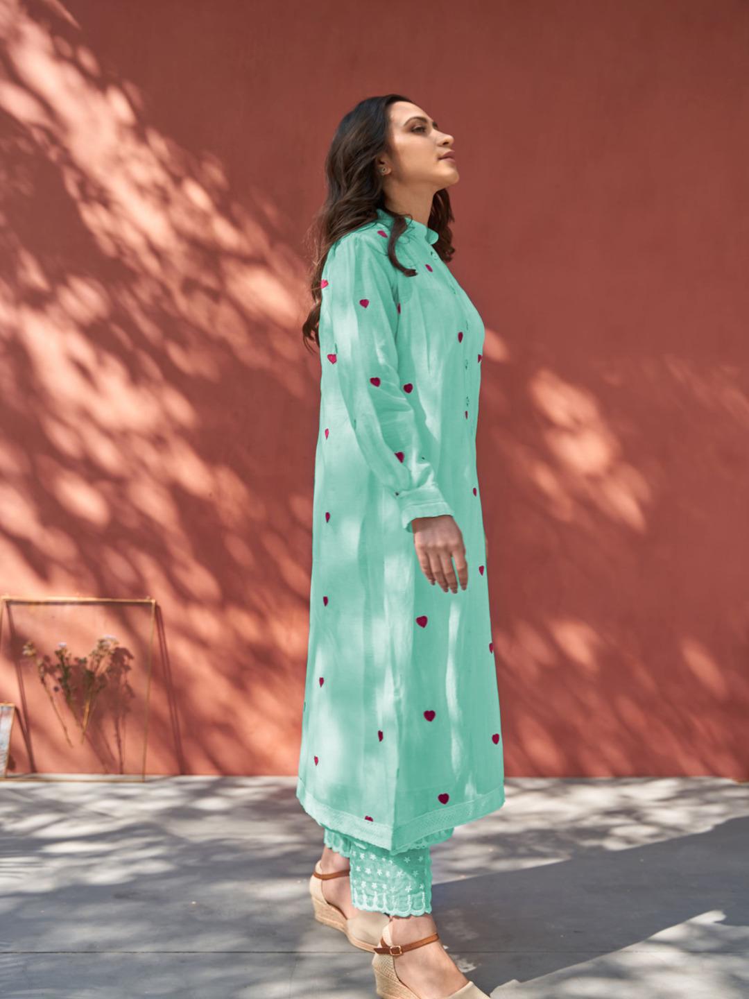 Sky Blue Color Beautiful Cotton Wear Kurti Pent Set
