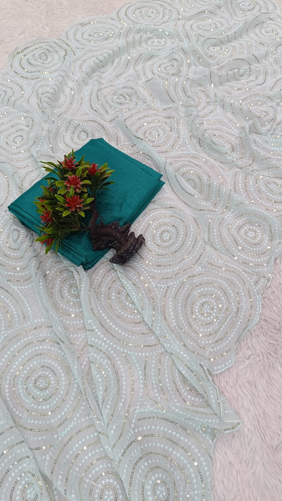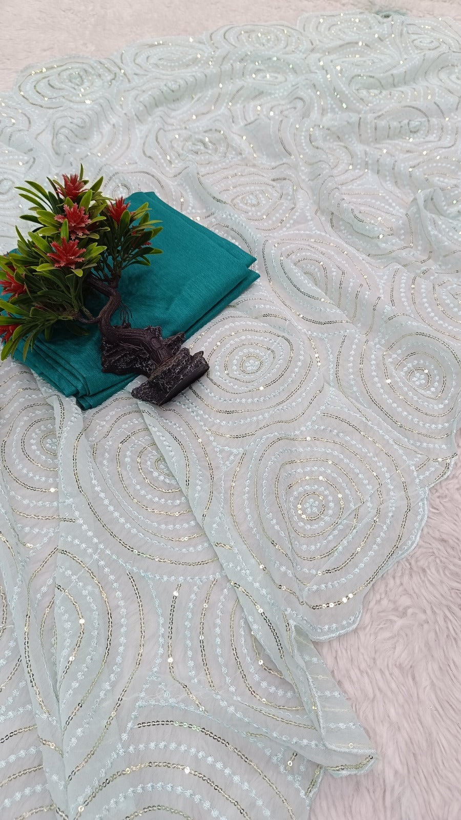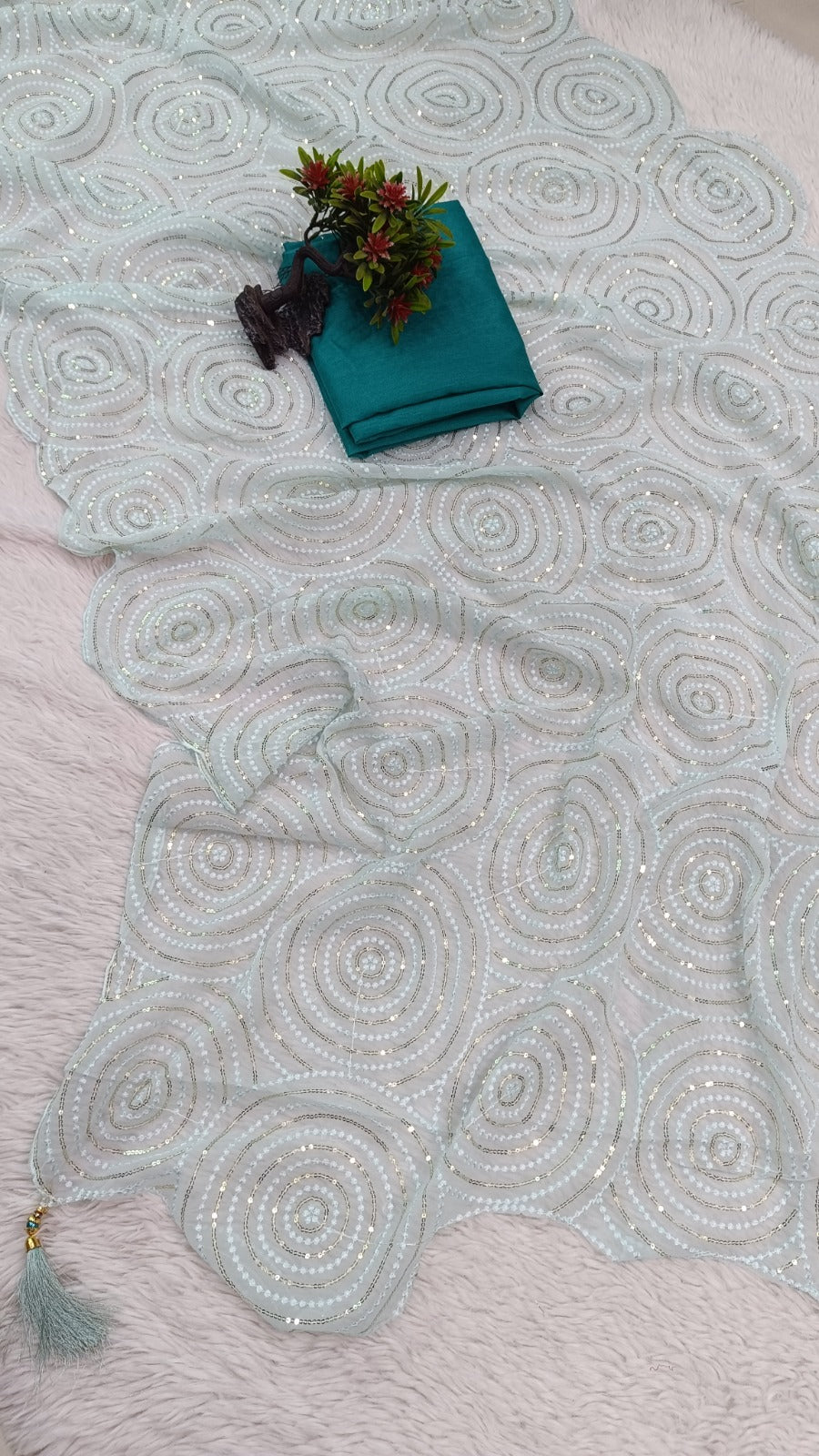 Saree Work- Sequence Work With Cutwork Border