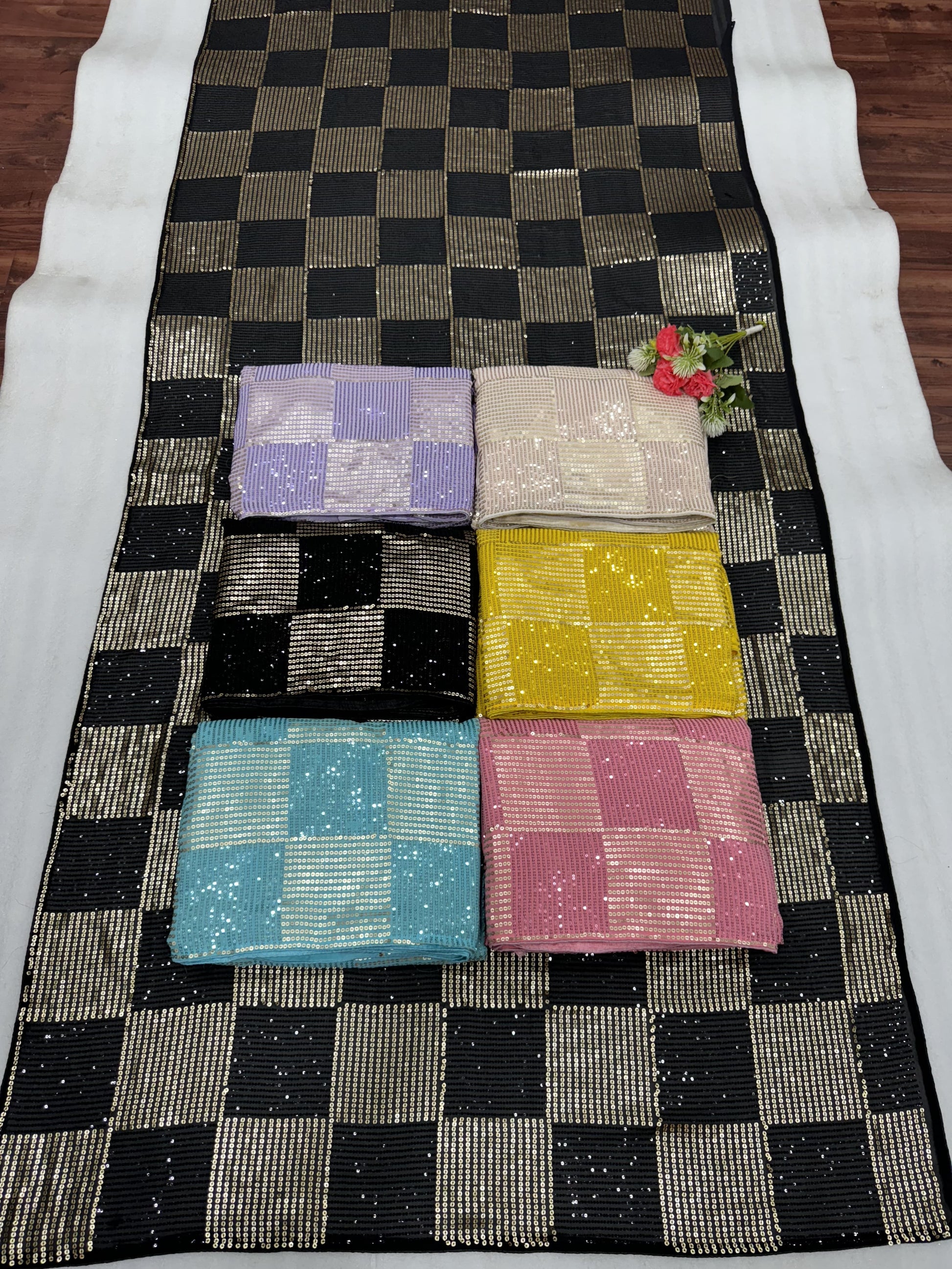 Dual Sequins Of 3mm & 5mm Sequins Work In Saree