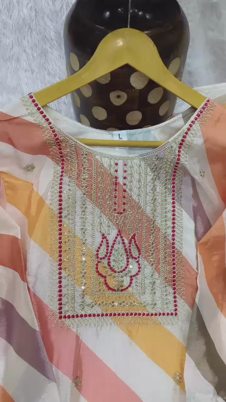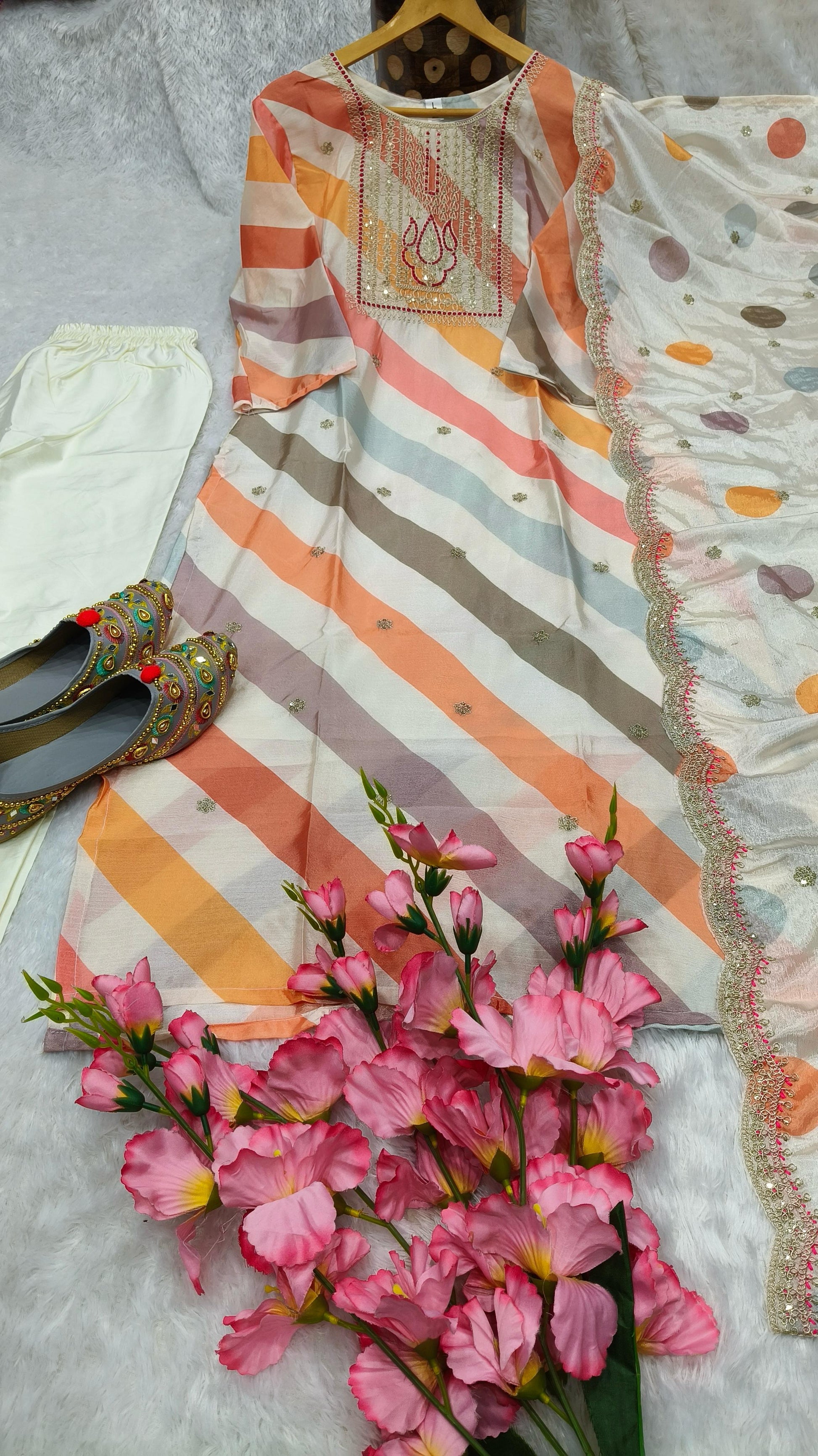 Presenting Beautiful Heavy Quality Chinon Silk Fabric Designer Festive Wear Kurti Pant And Dupatta Embroidery Work With Lining