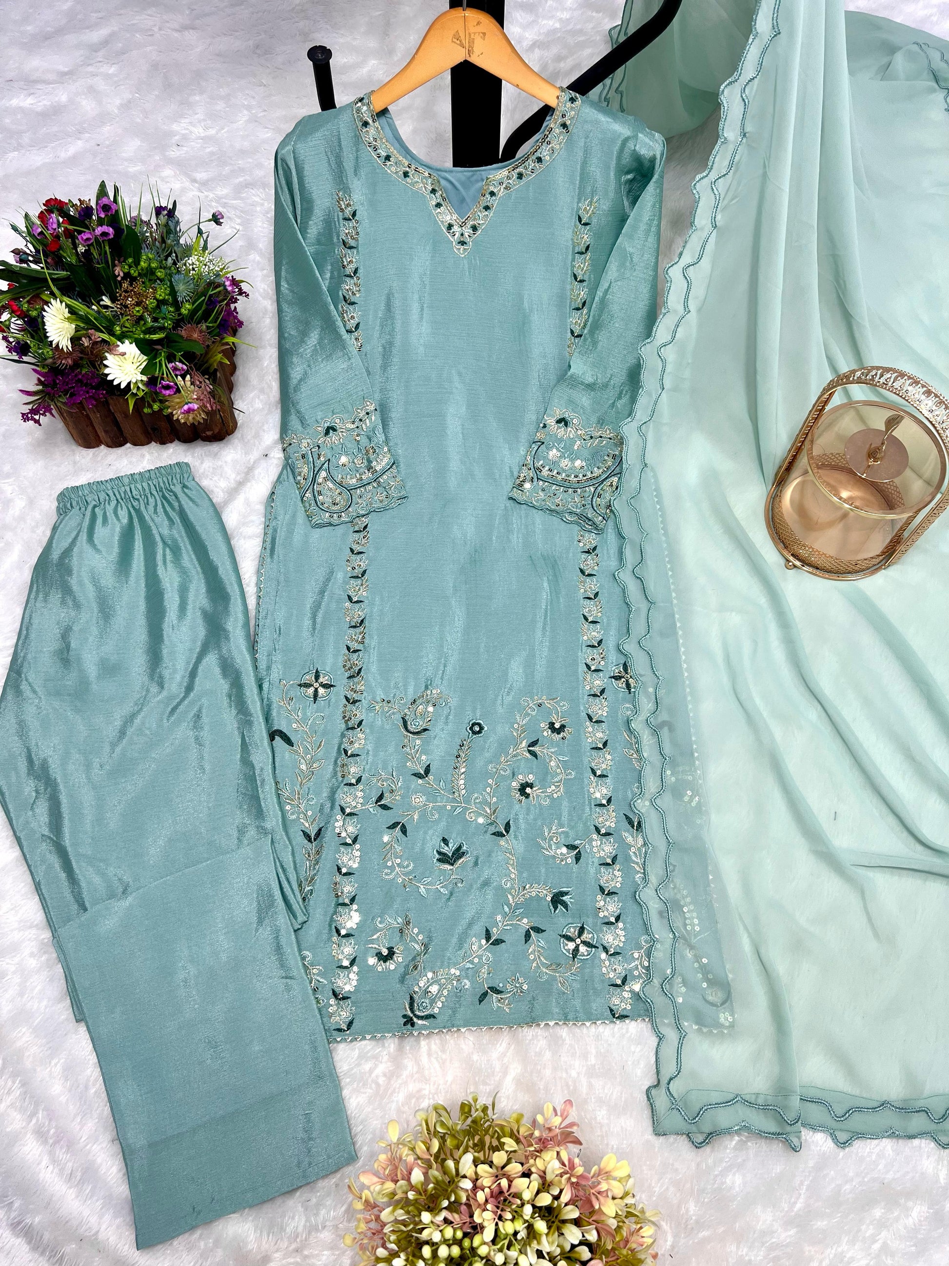 Work :- Attractive Embroidery Thread And Sequence Work.(Work Only Front Side)
