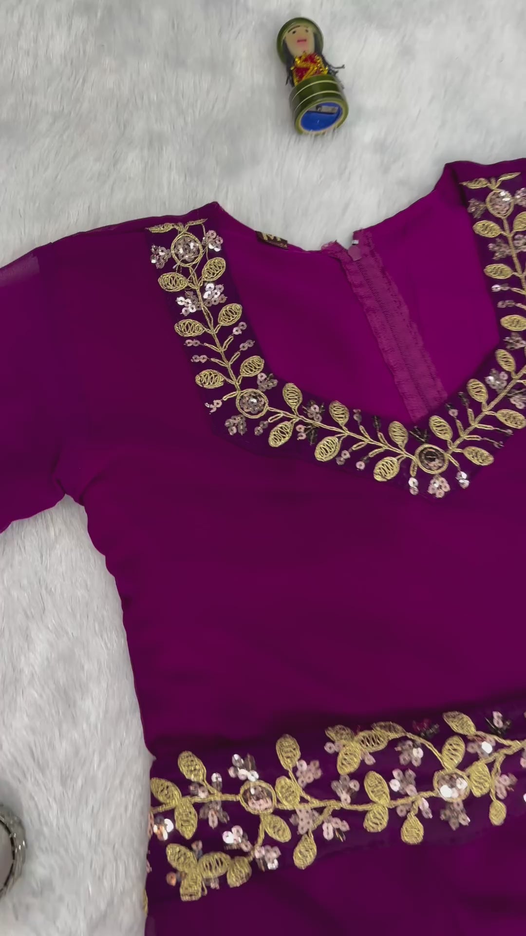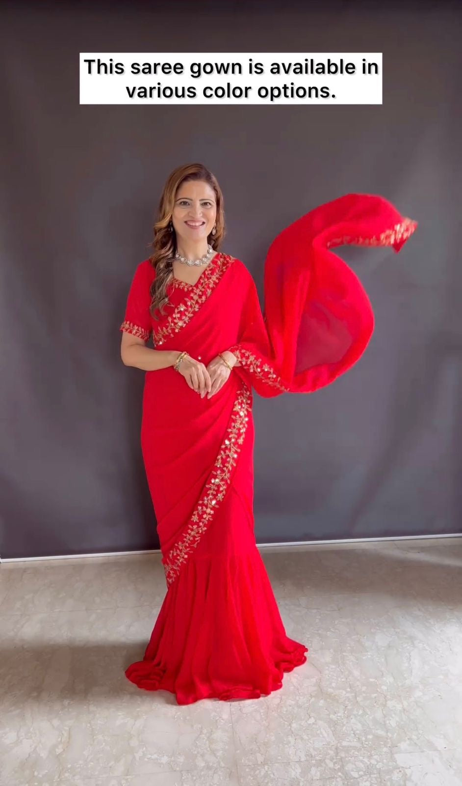 Trending Georgette Fabric With Embroidery Work Border Full Flair Stitched Saree-Gown in red color