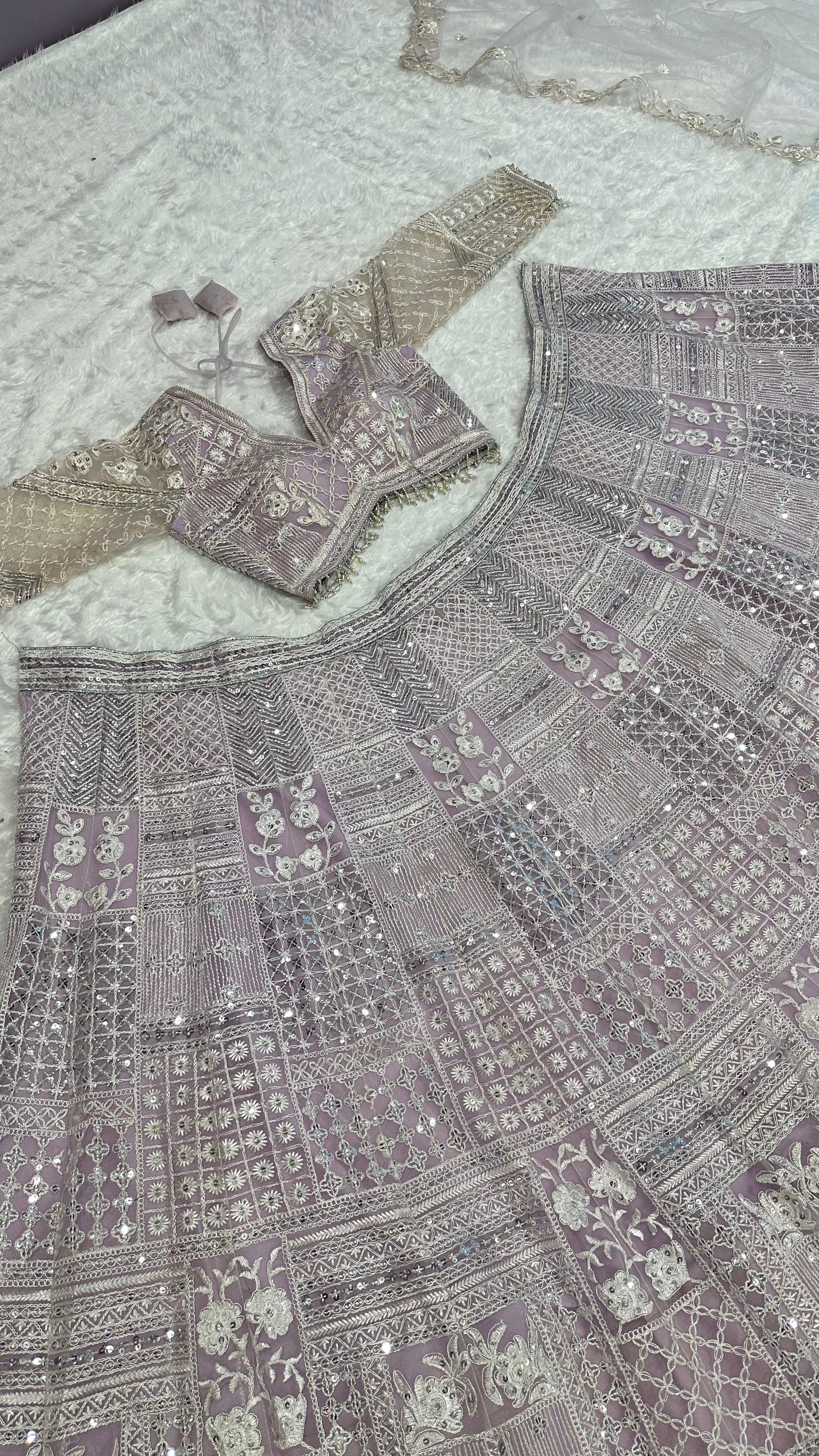 Net blouse with resham thread & sequins work all over front & back ( unstitch )