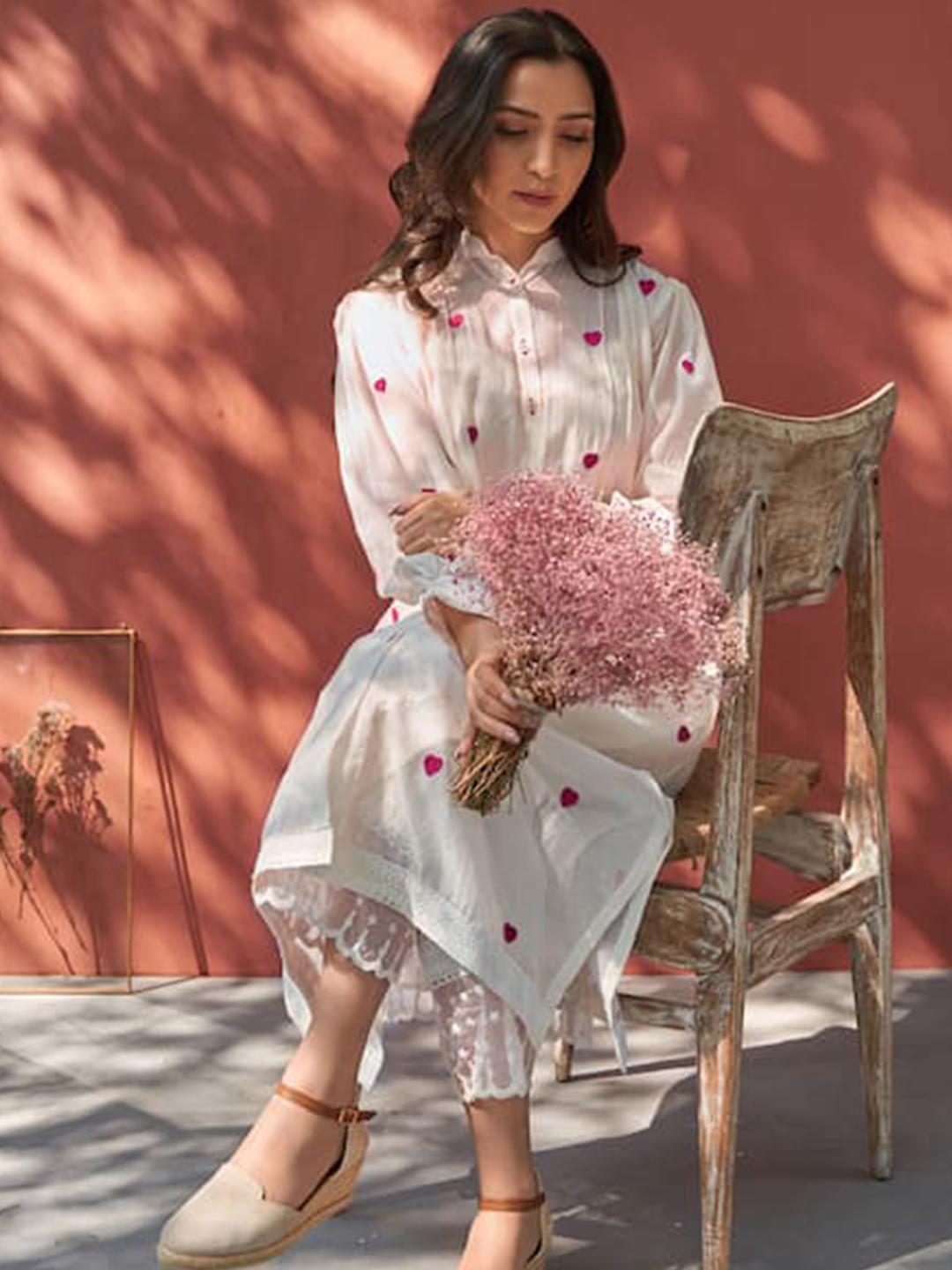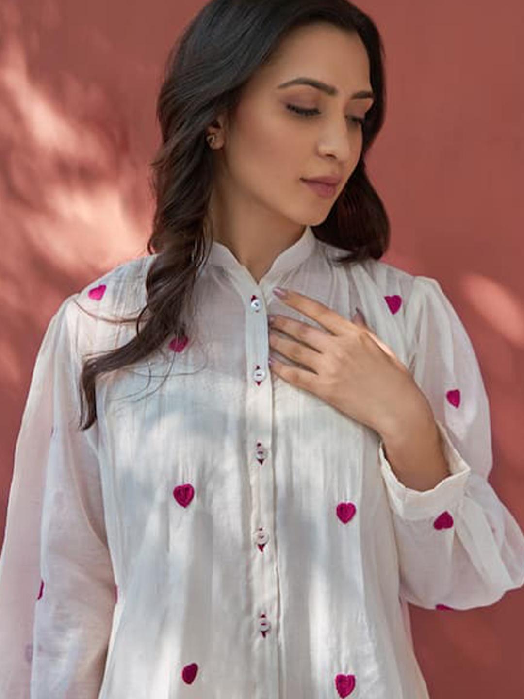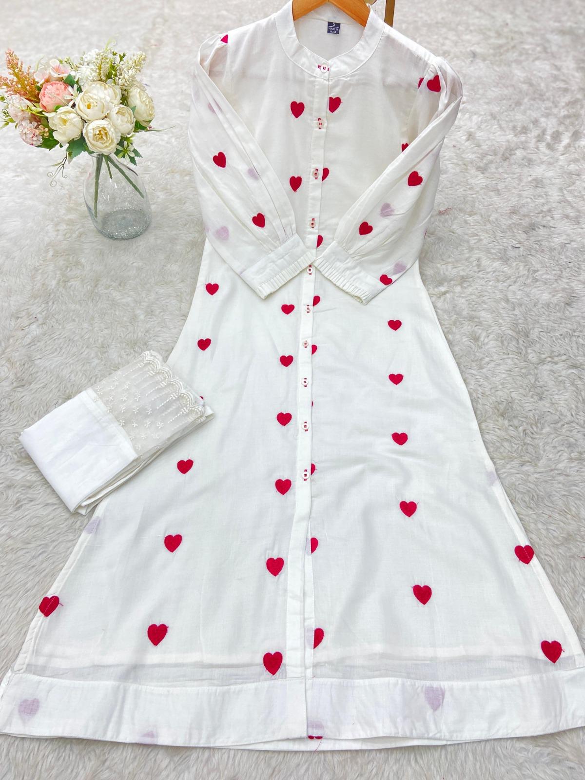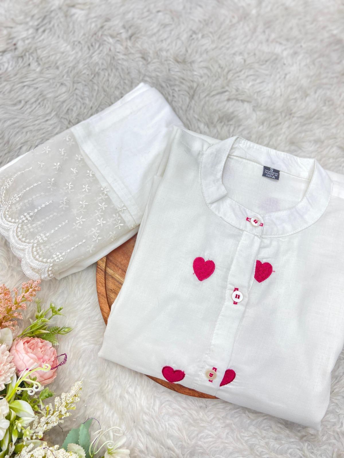 White Color Beautiful Cotton Wear Kurti Pent Set