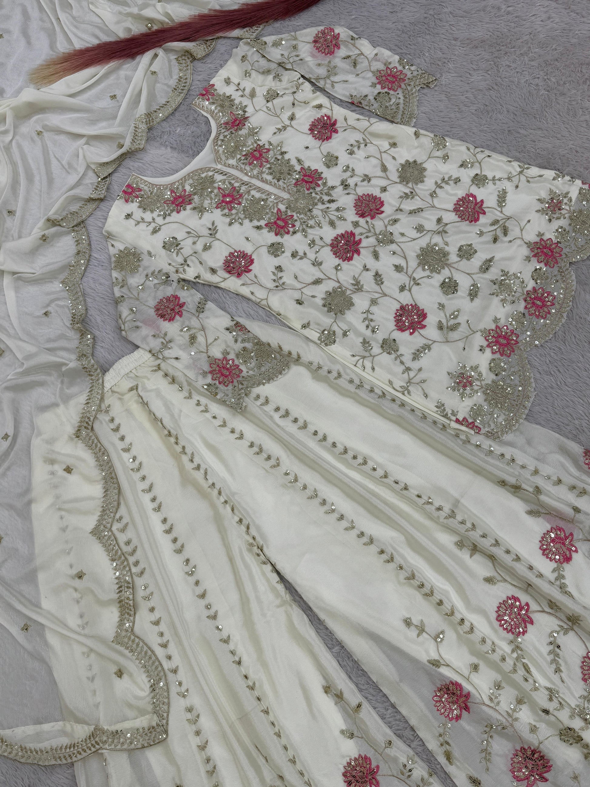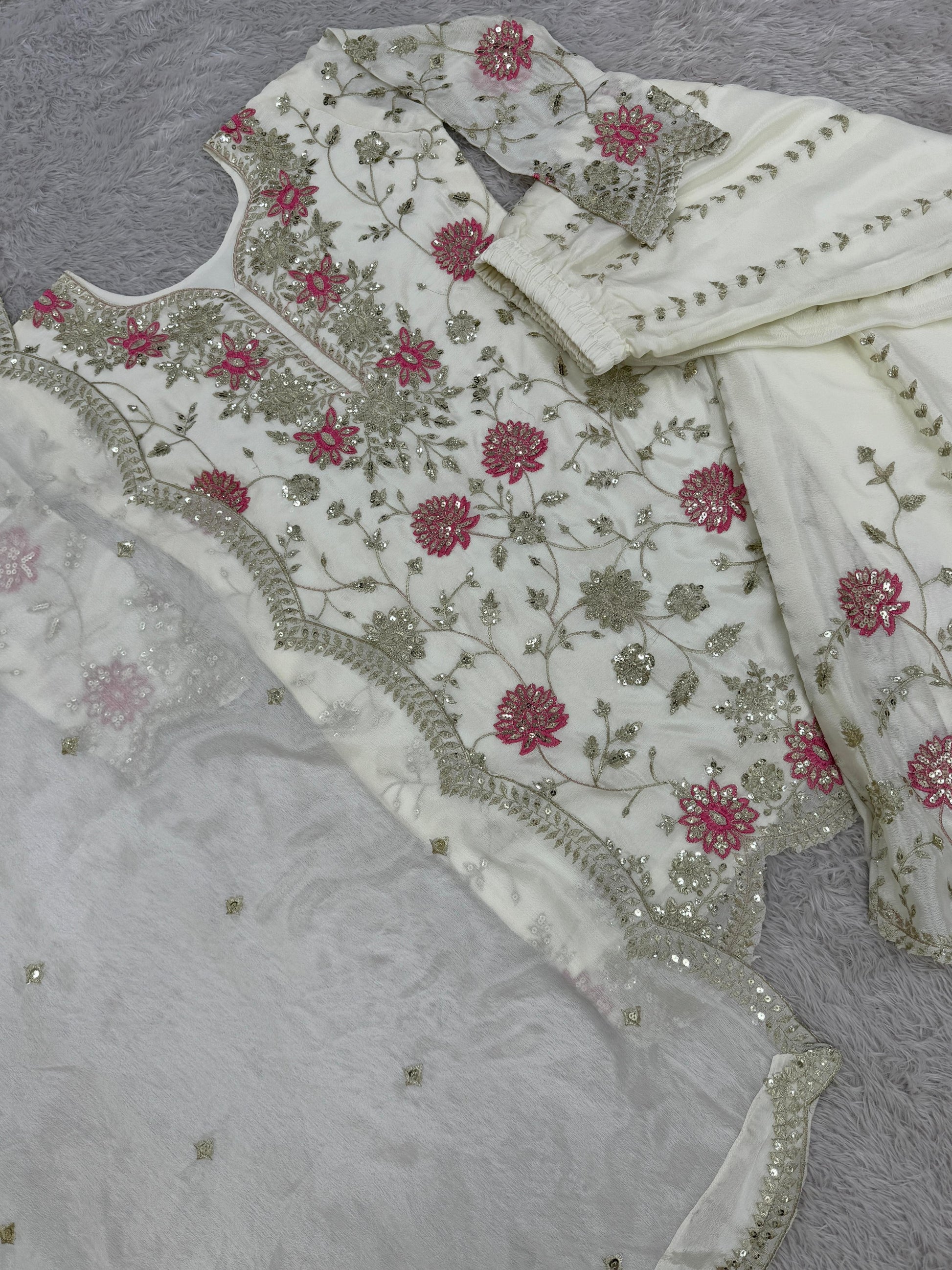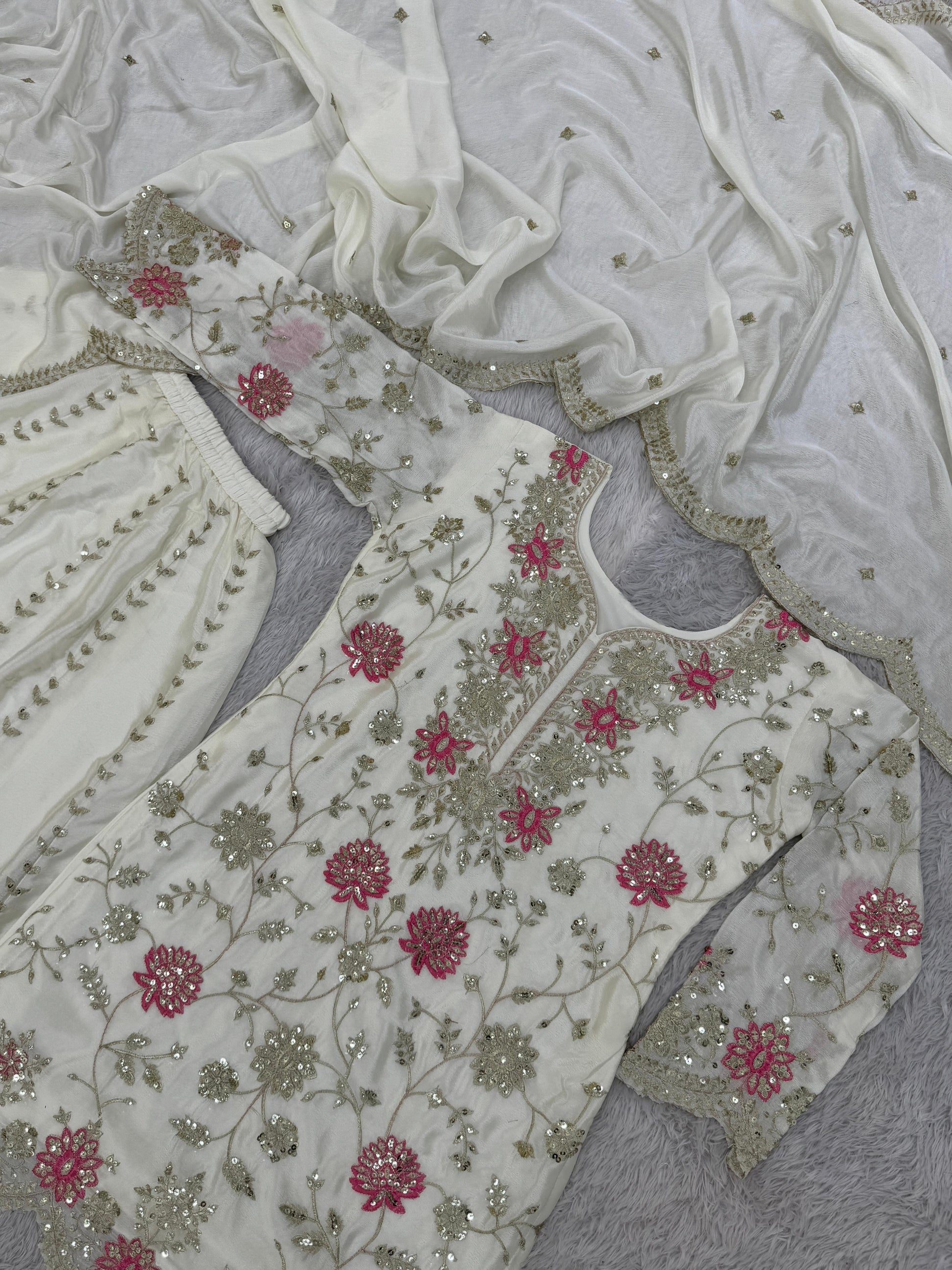 White Color Beautiful Plazo Suit In Chinon FAbric