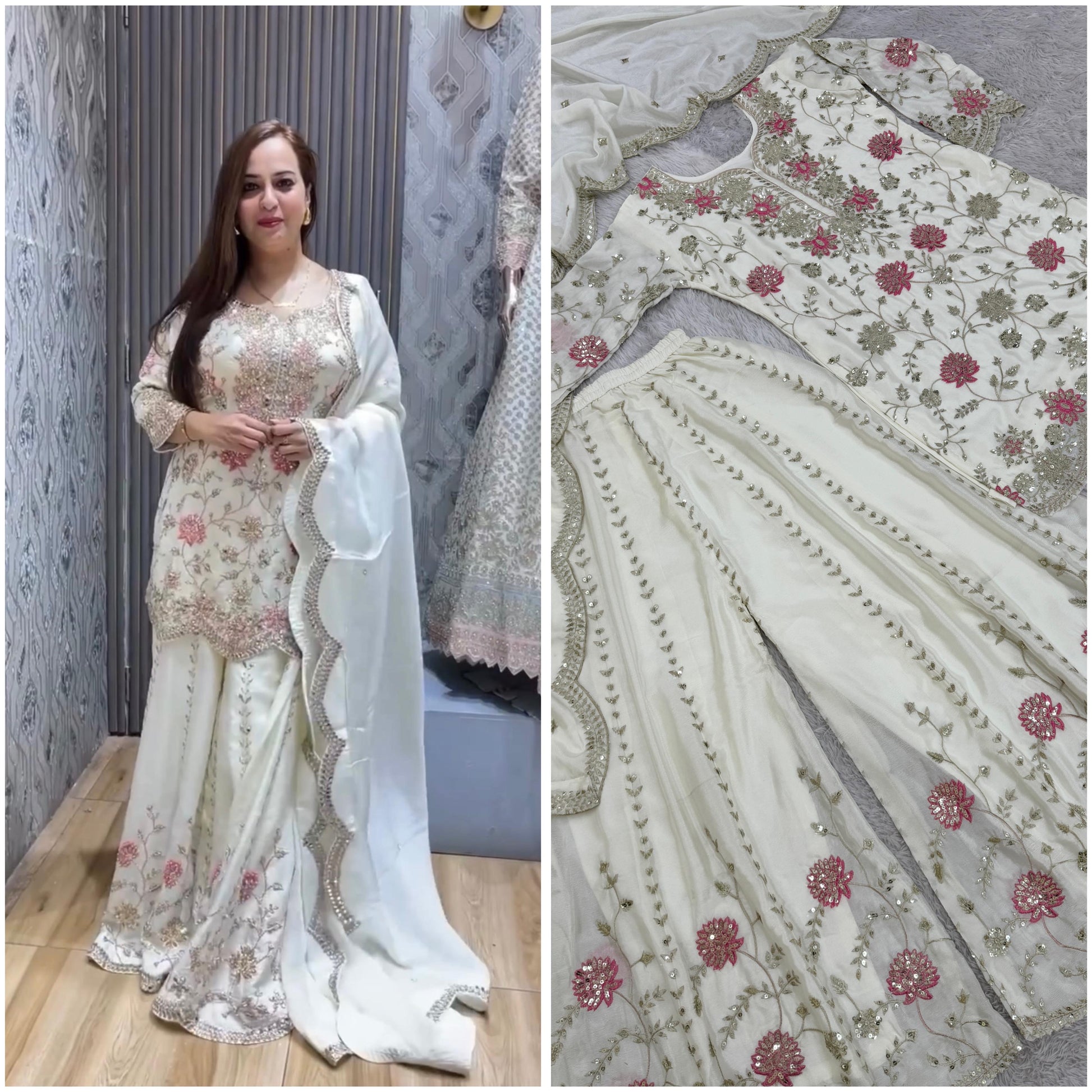 ➡️Work :- Attractive Embroidery Sequence And Thread Work(Work Only Front Side).