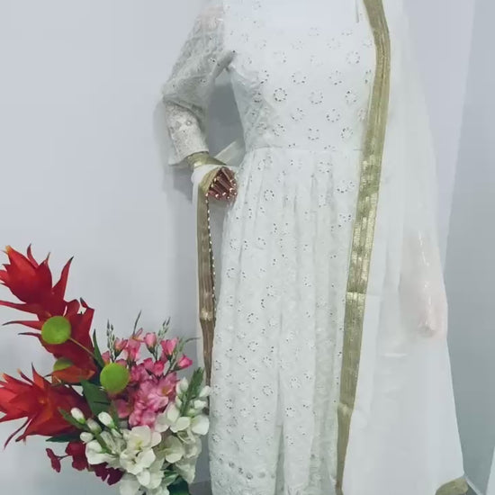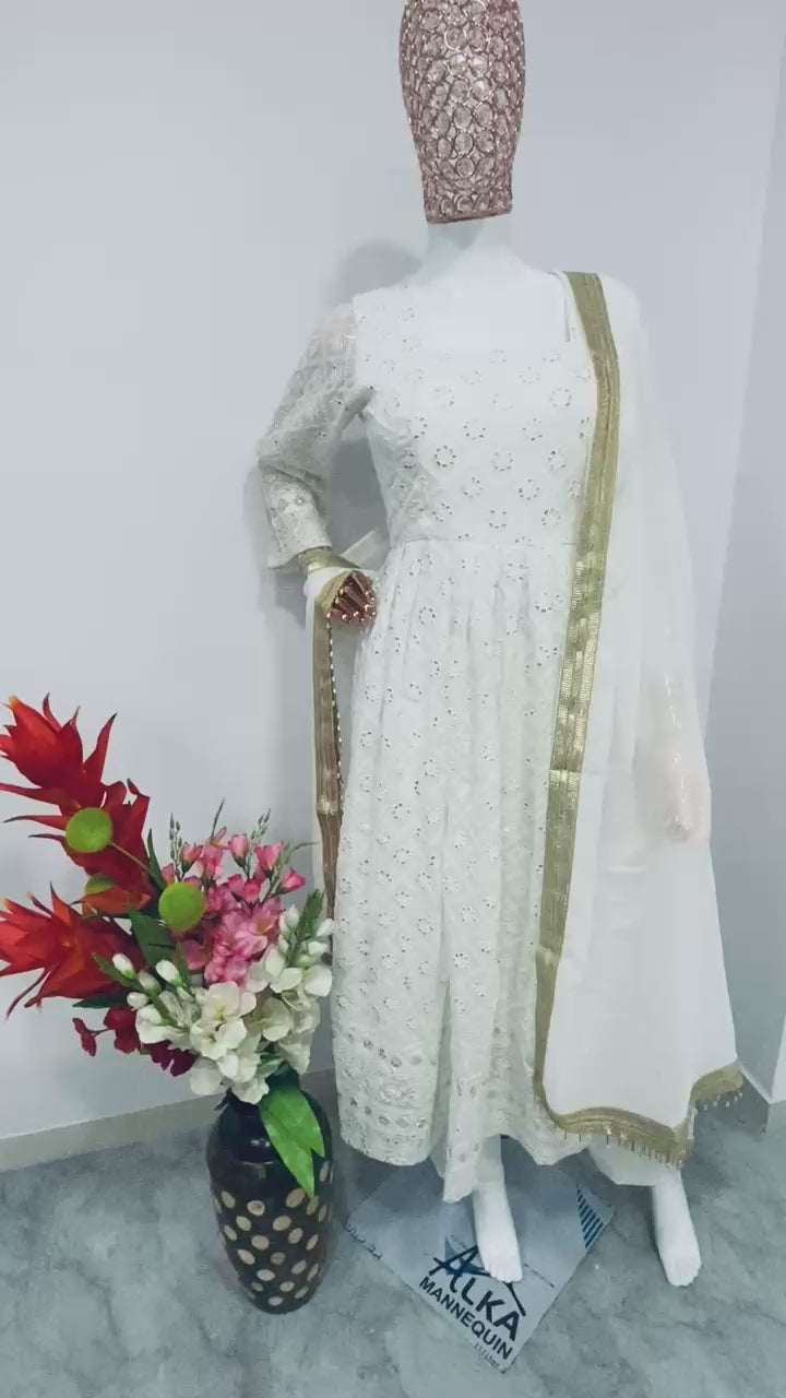 White Cream Color Beautiful Anarkali Gown in Georgette Fabric