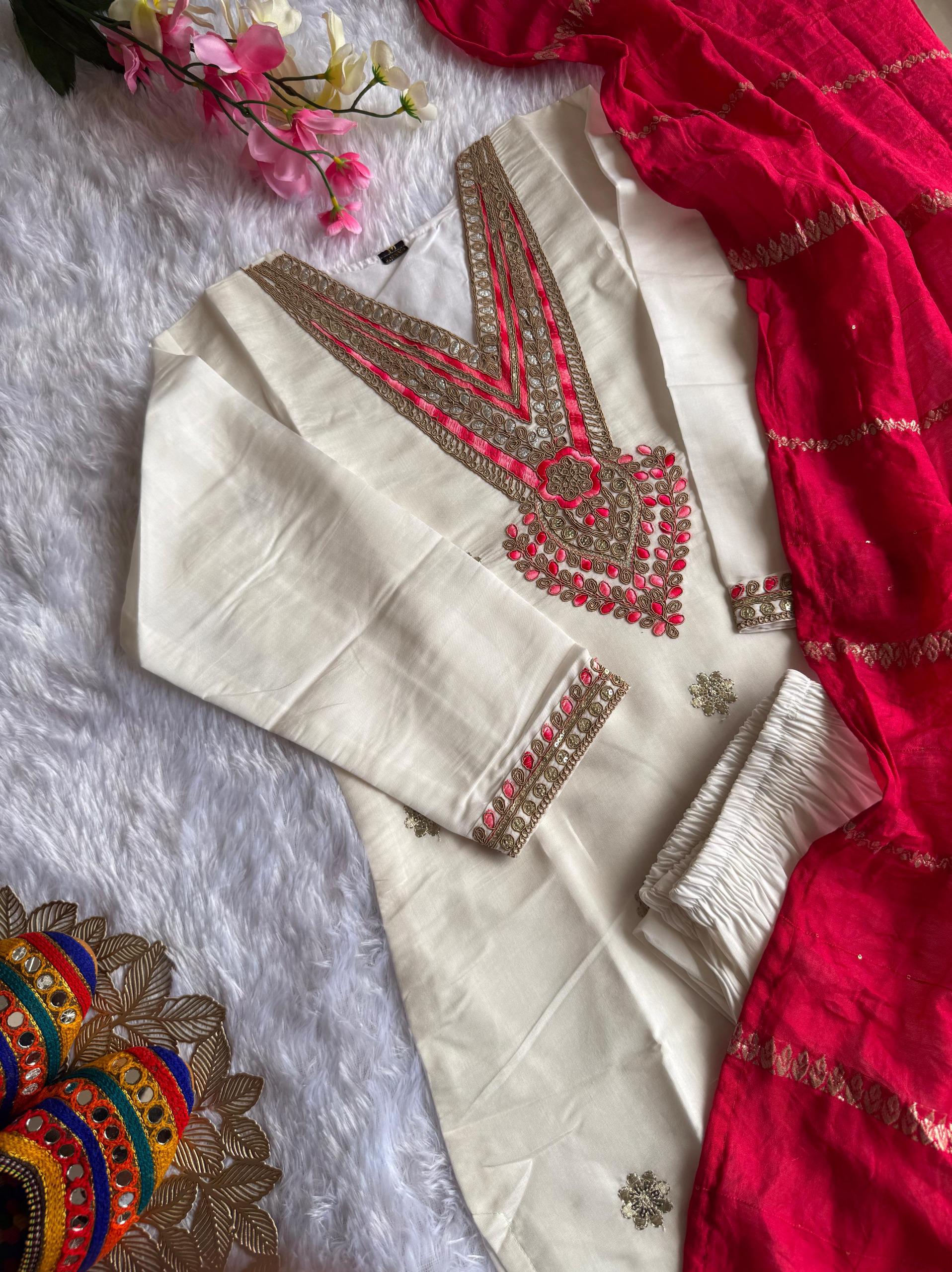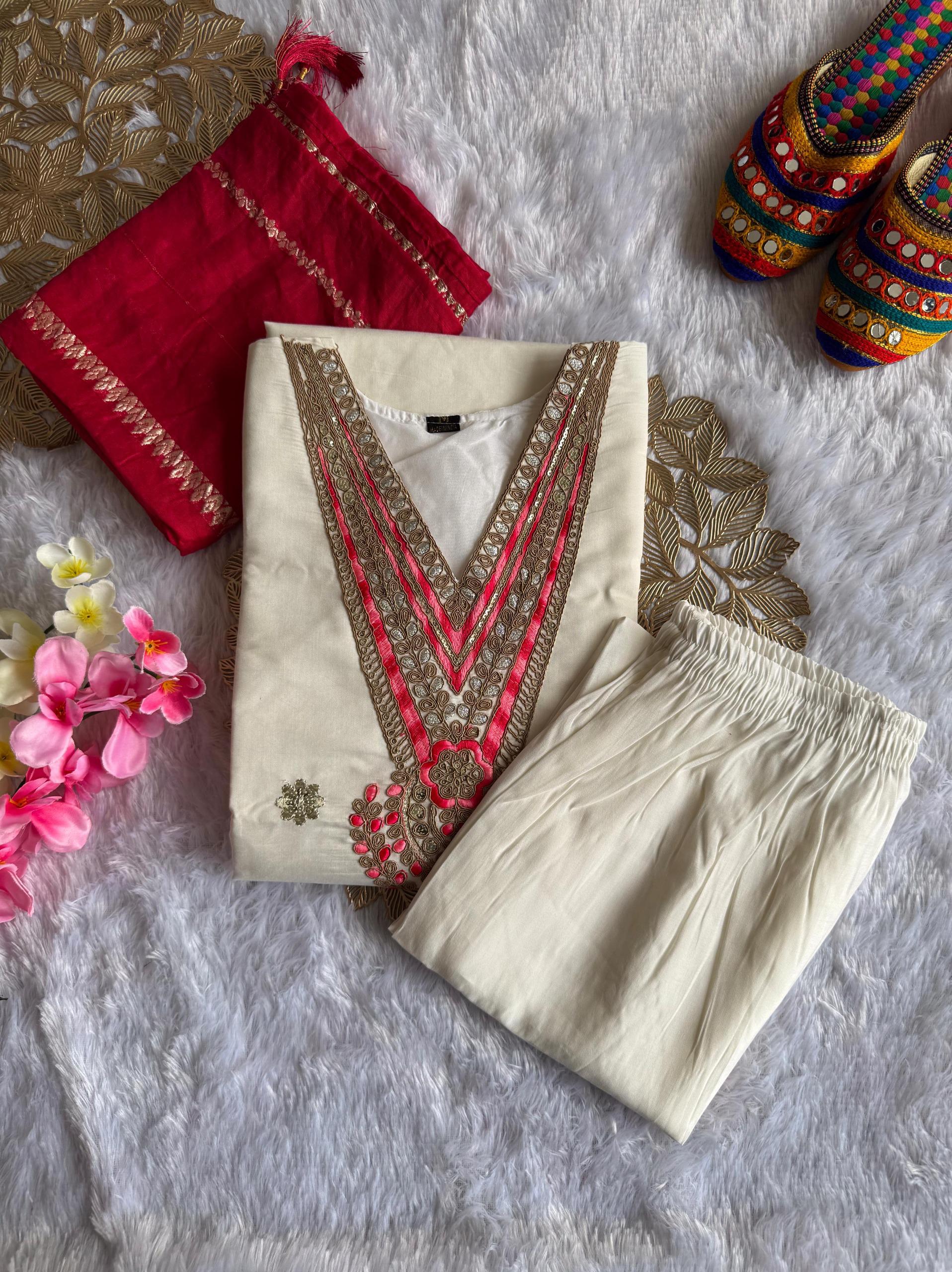 White Cream Color Beautiful Summer wear Dress in Roman Silk fabric
