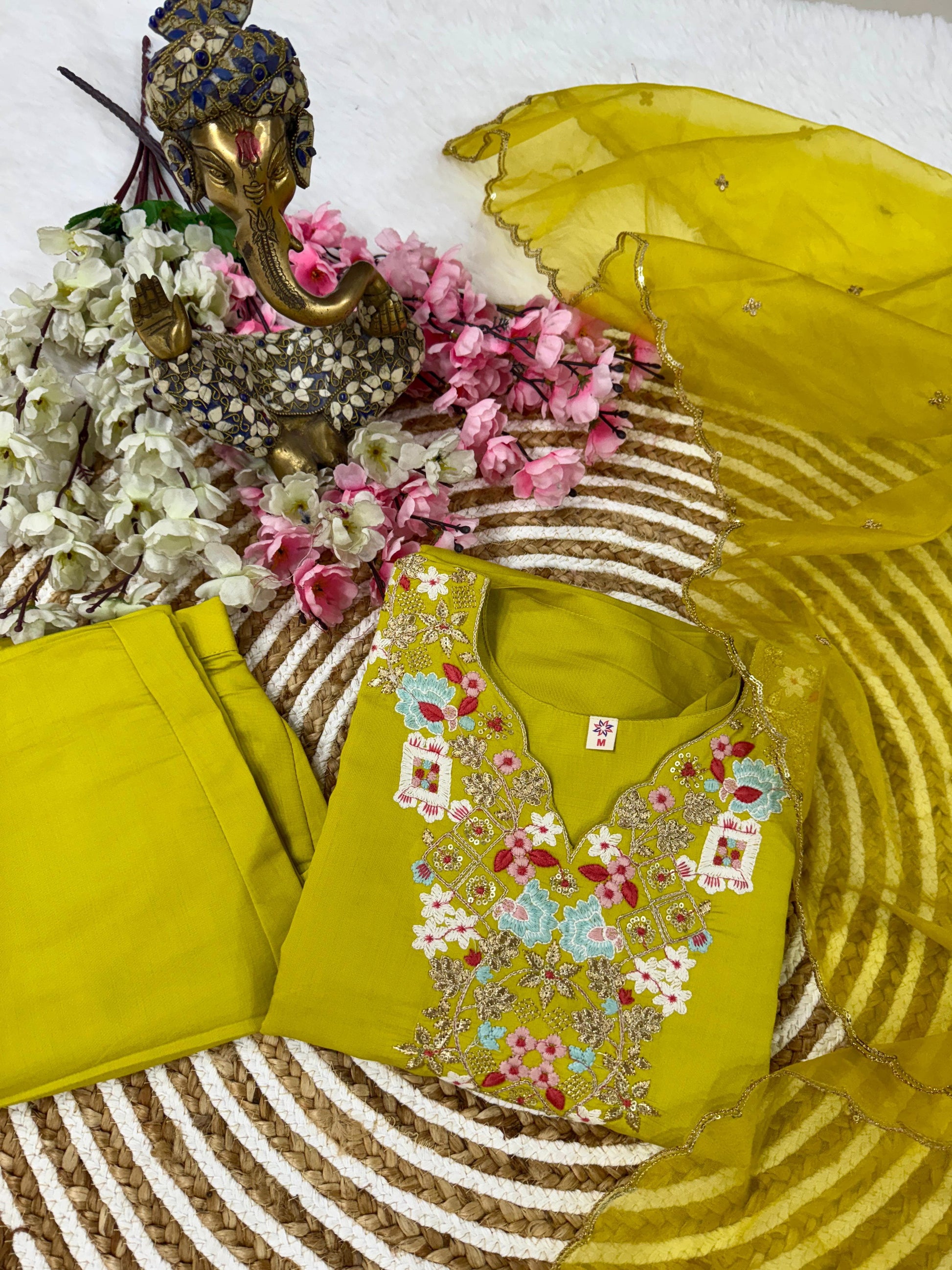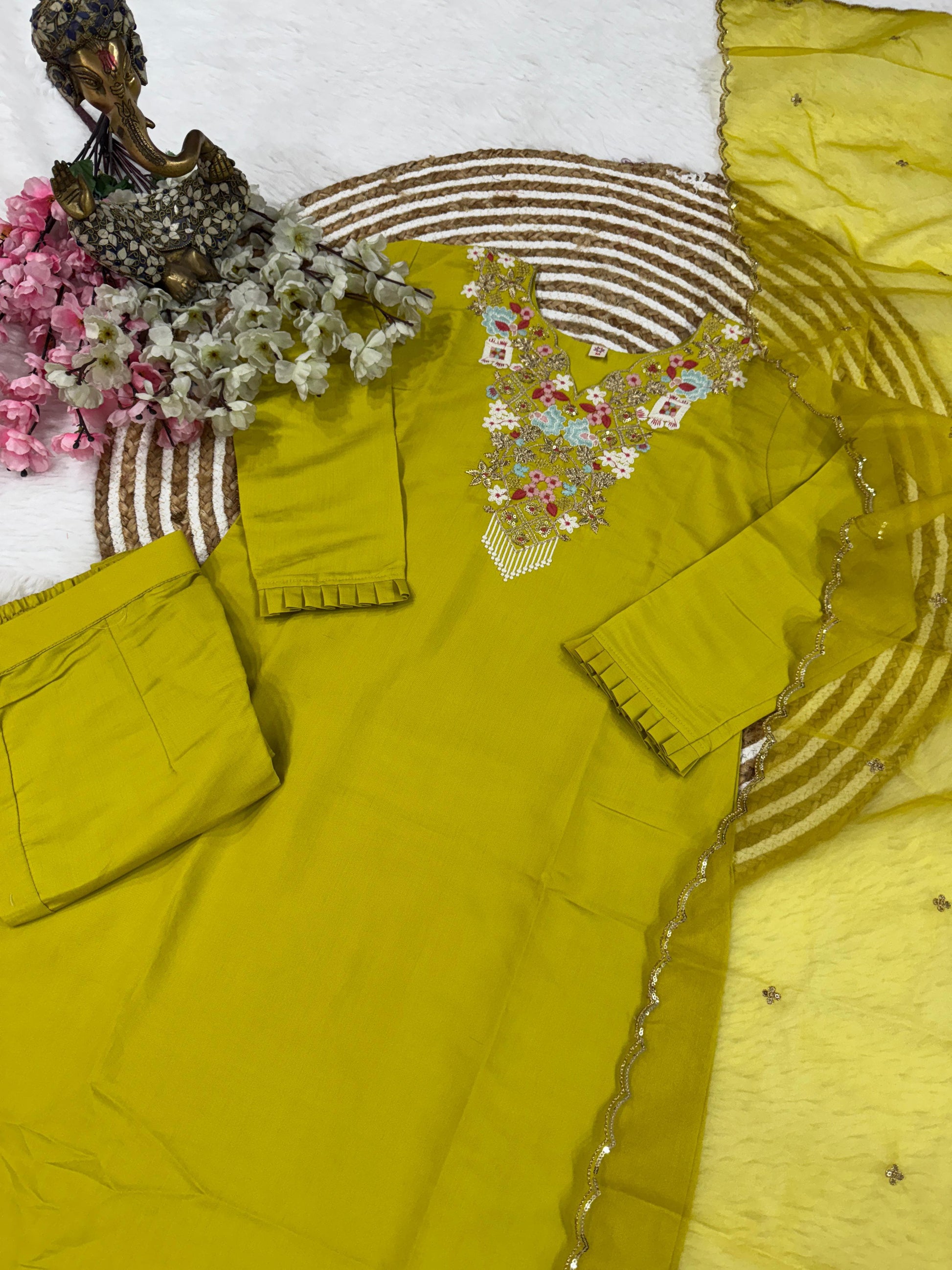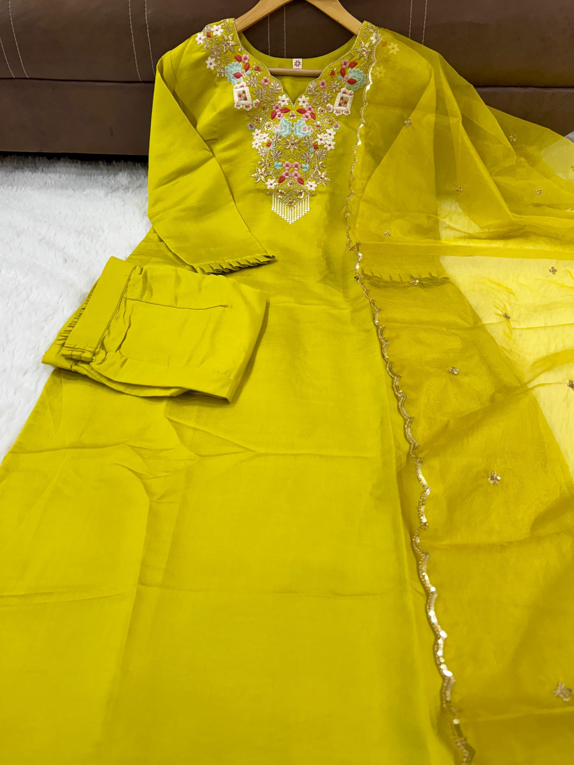 Yellow Color Beautiful Chanderi Silk Fabric dress for daily wear