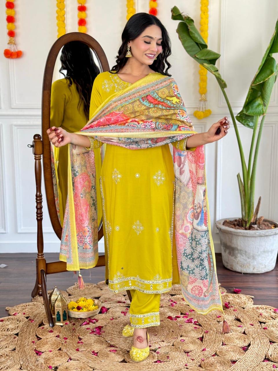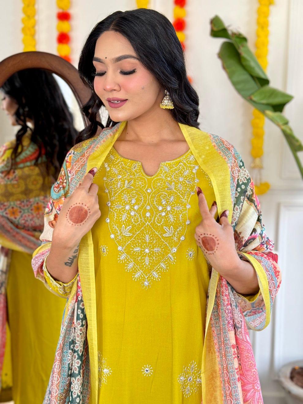 Yellow Color Beautiful Partywear Dress in Cotton Fabric