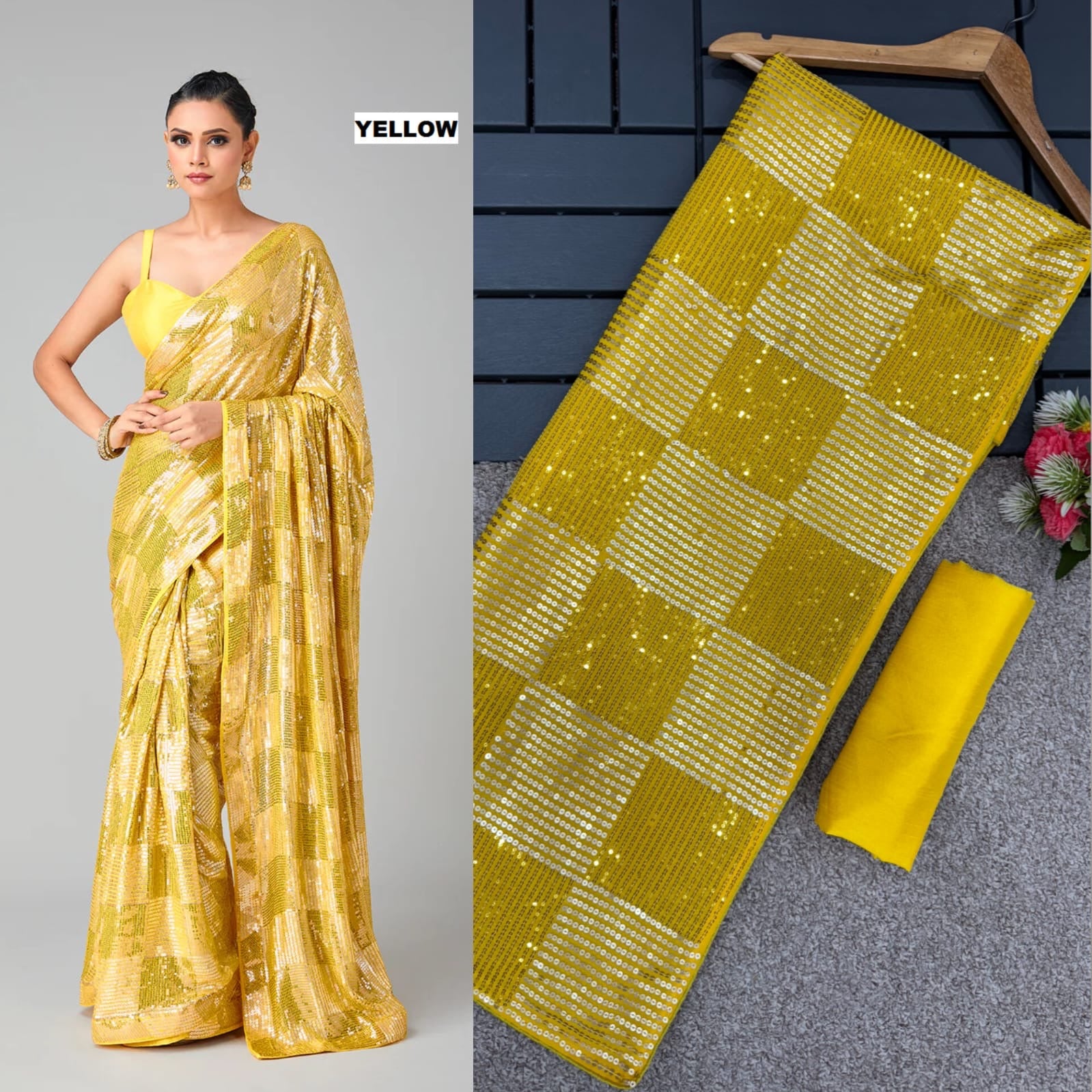 Yellow Color Beautiful Partywear Saree In Georgette Fabric Buy It now