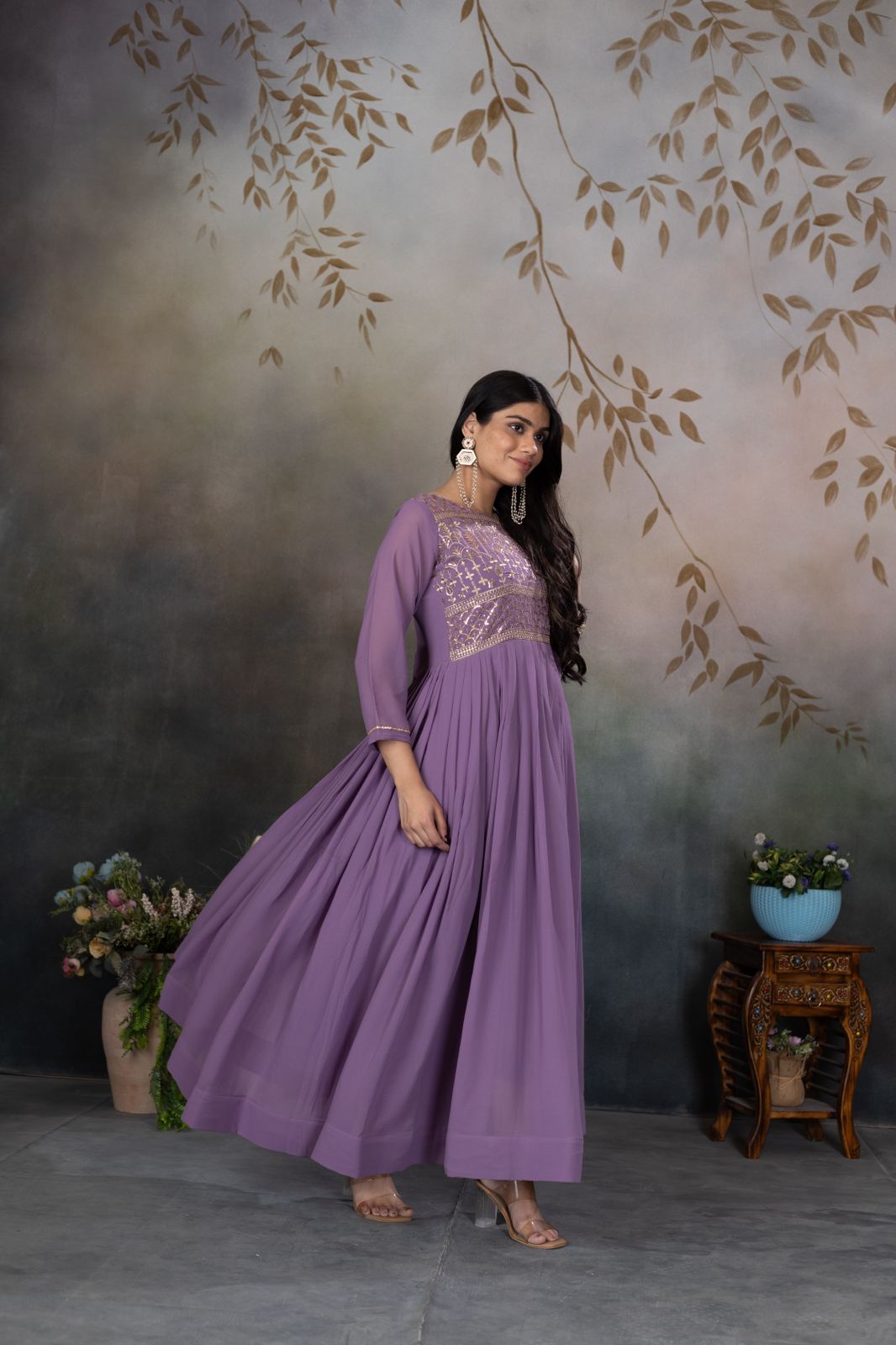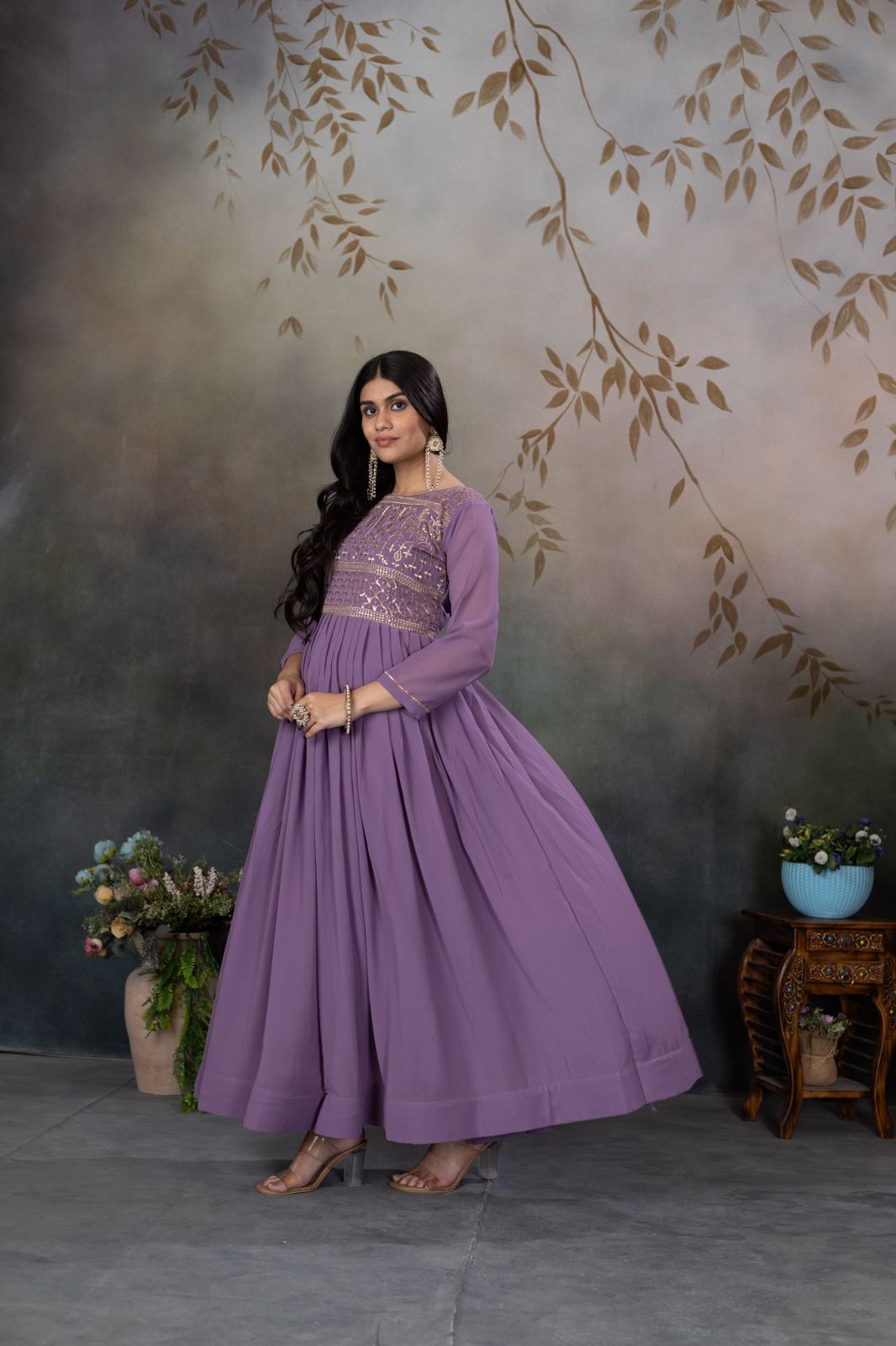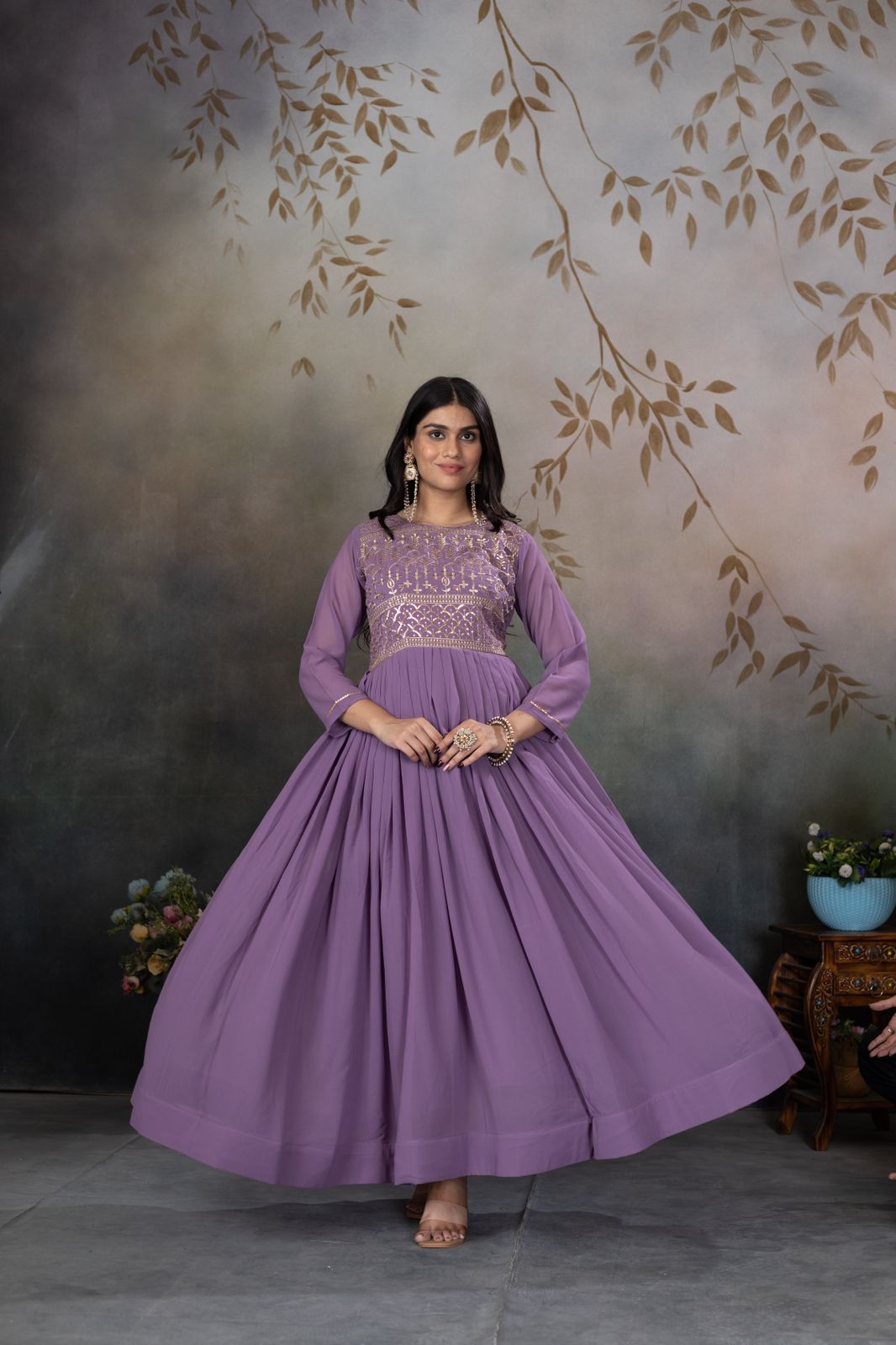 Zari-Thread & Sequins Embroidery gown Made For Desirable Women's Who Deserve It in purple color