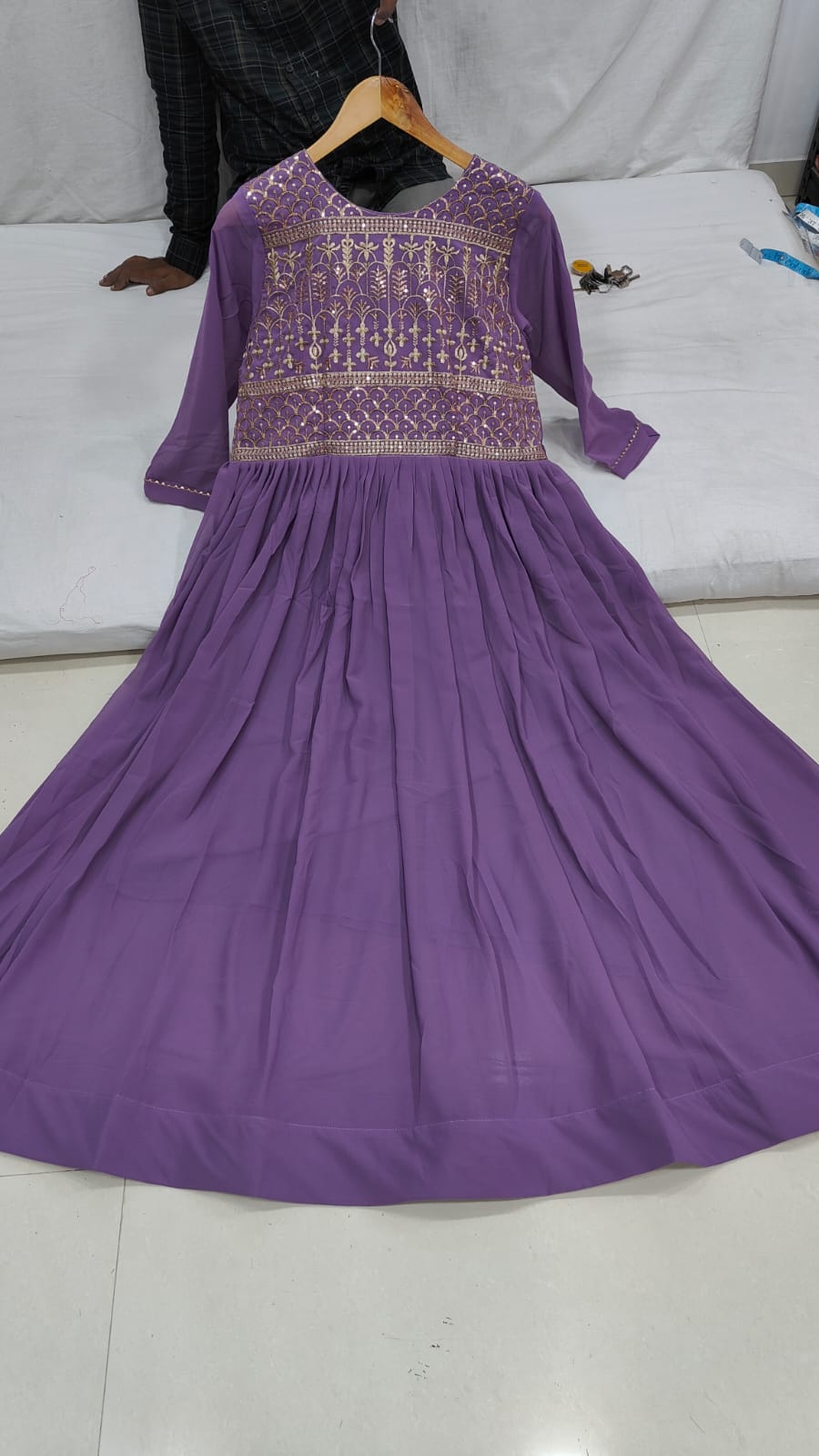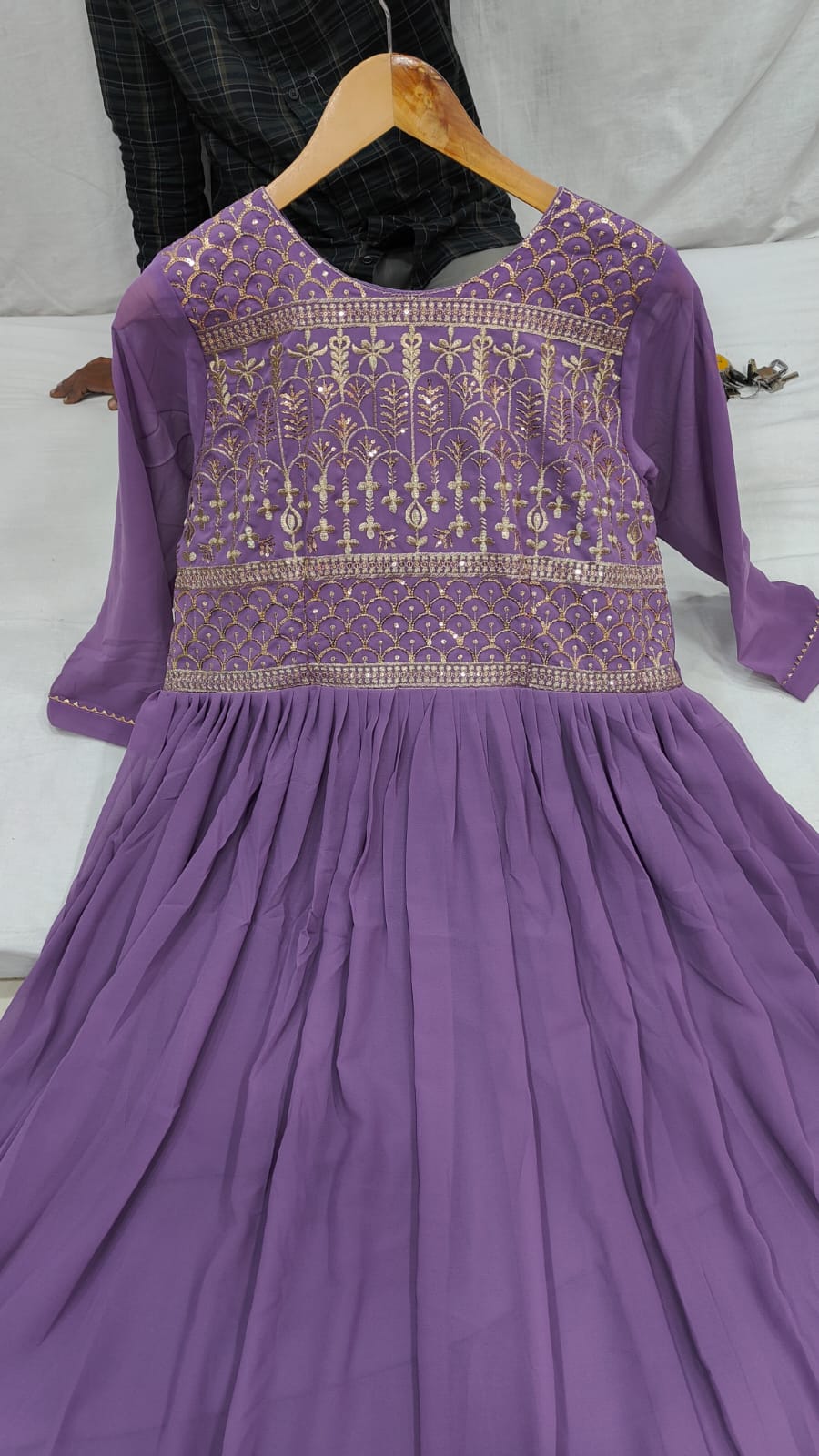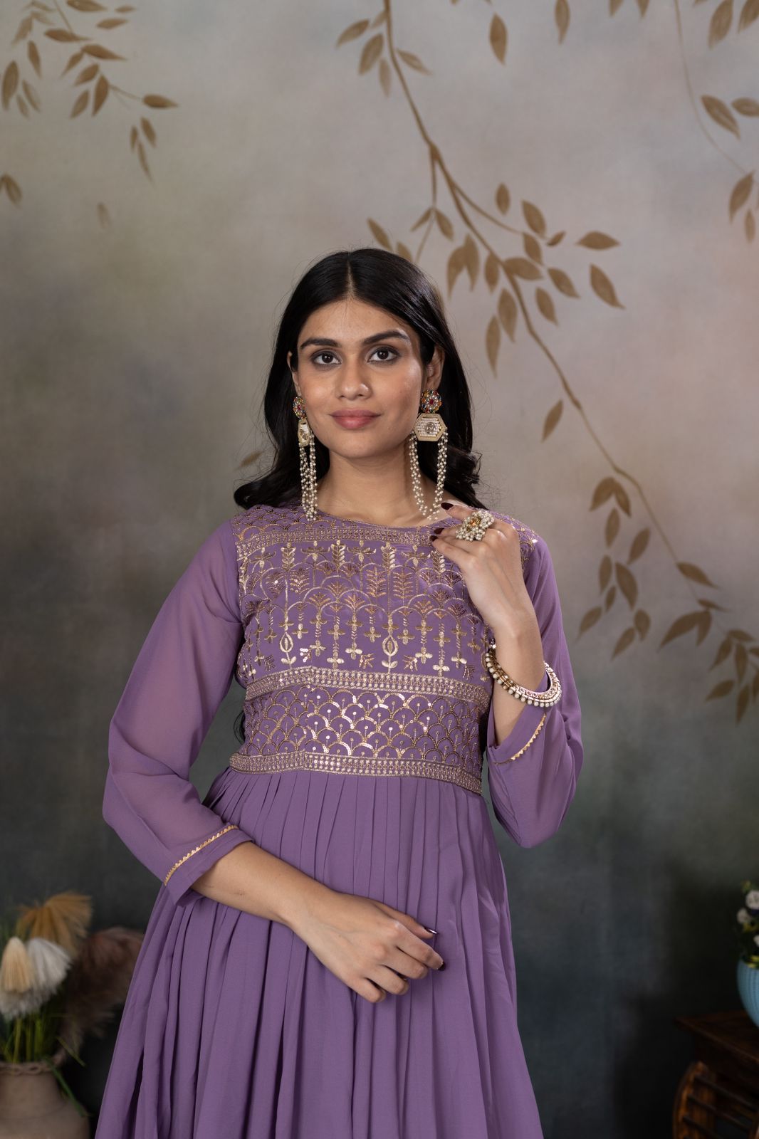 Zari-Thread & Sequins Embroidery gown Made For Desirable Women's Who Deserve It in purple color